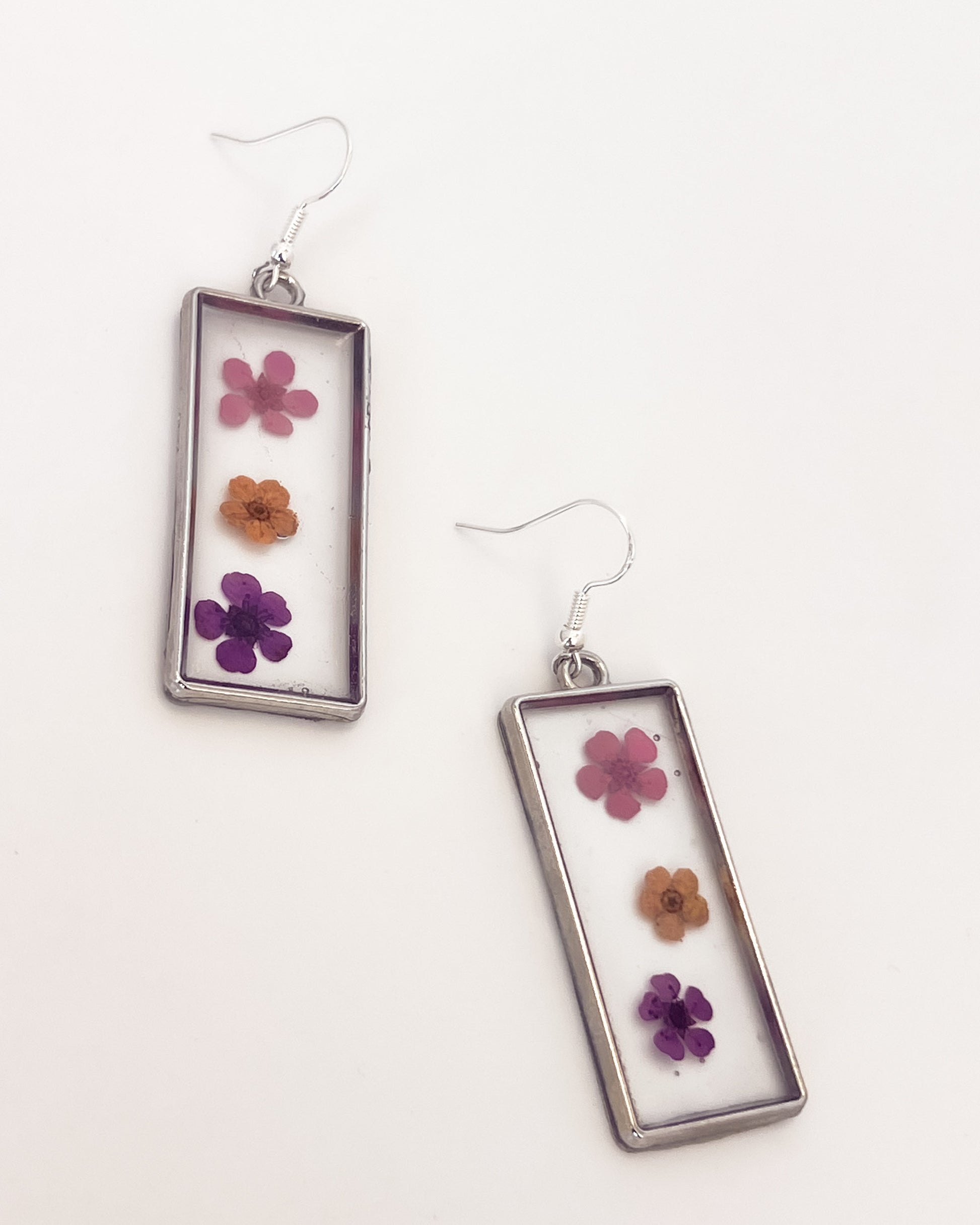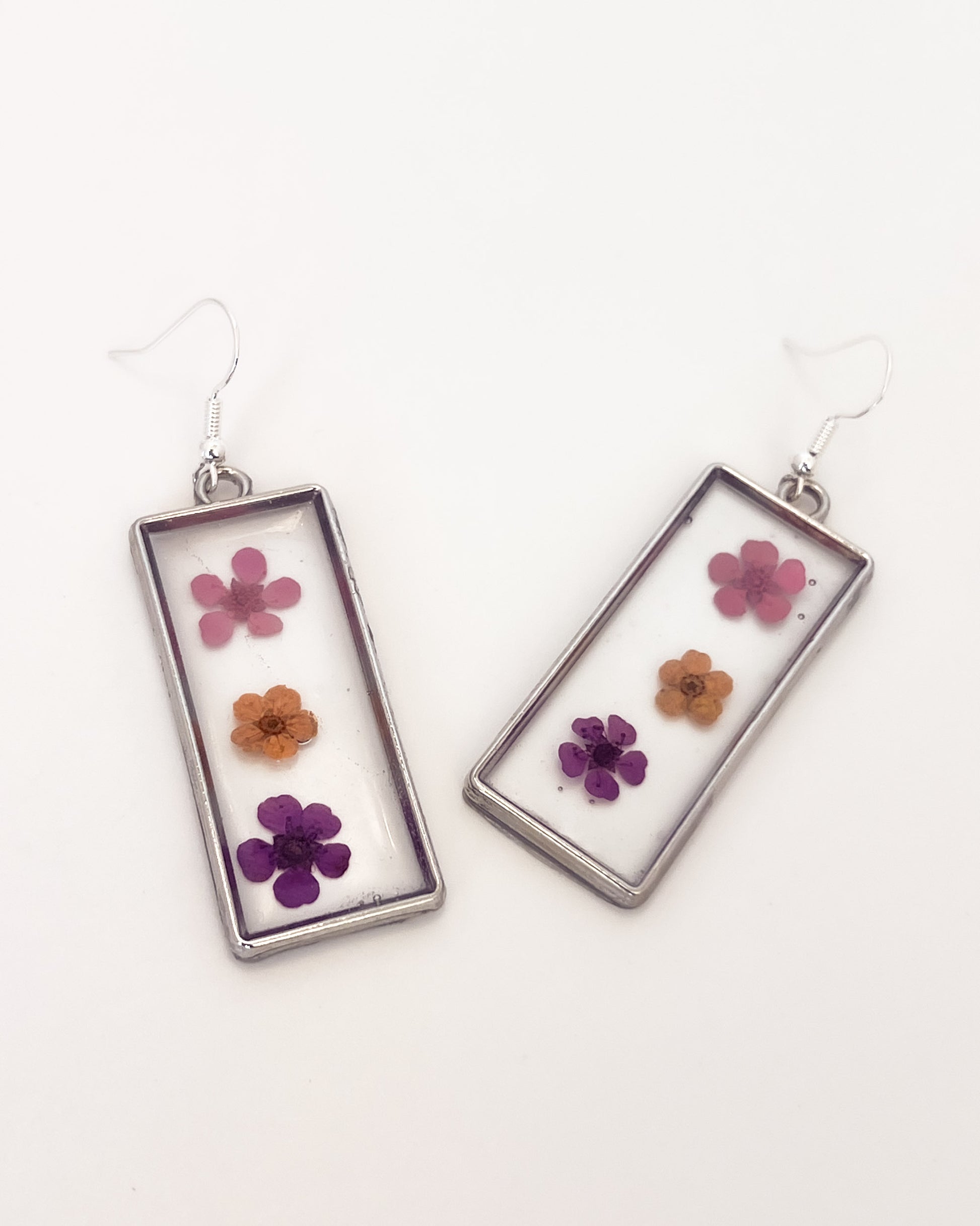 Handmade resin earrings made with natural elements.