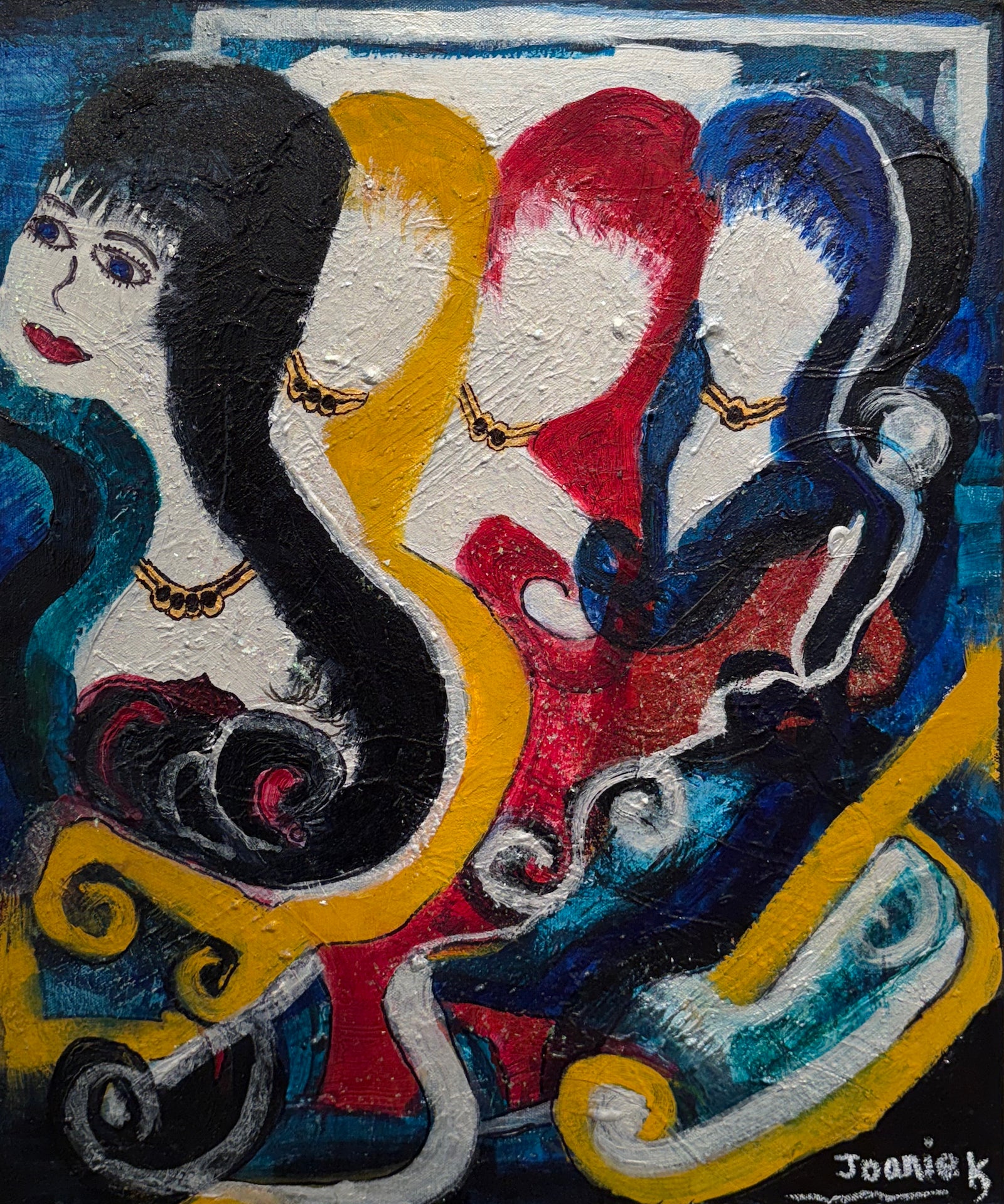 24” x 20” original Mixed Media on Canvas by Joanie Kaufman. Kaufman is a member of the Florida Women's Arts Association (FLWAA). This work is part of Gallery500's exhibition "50 Shades of Payne's Grey." In this exhibition, FLWAA members interpret the versatile color of Payne's Grey through their own individual lens and media.