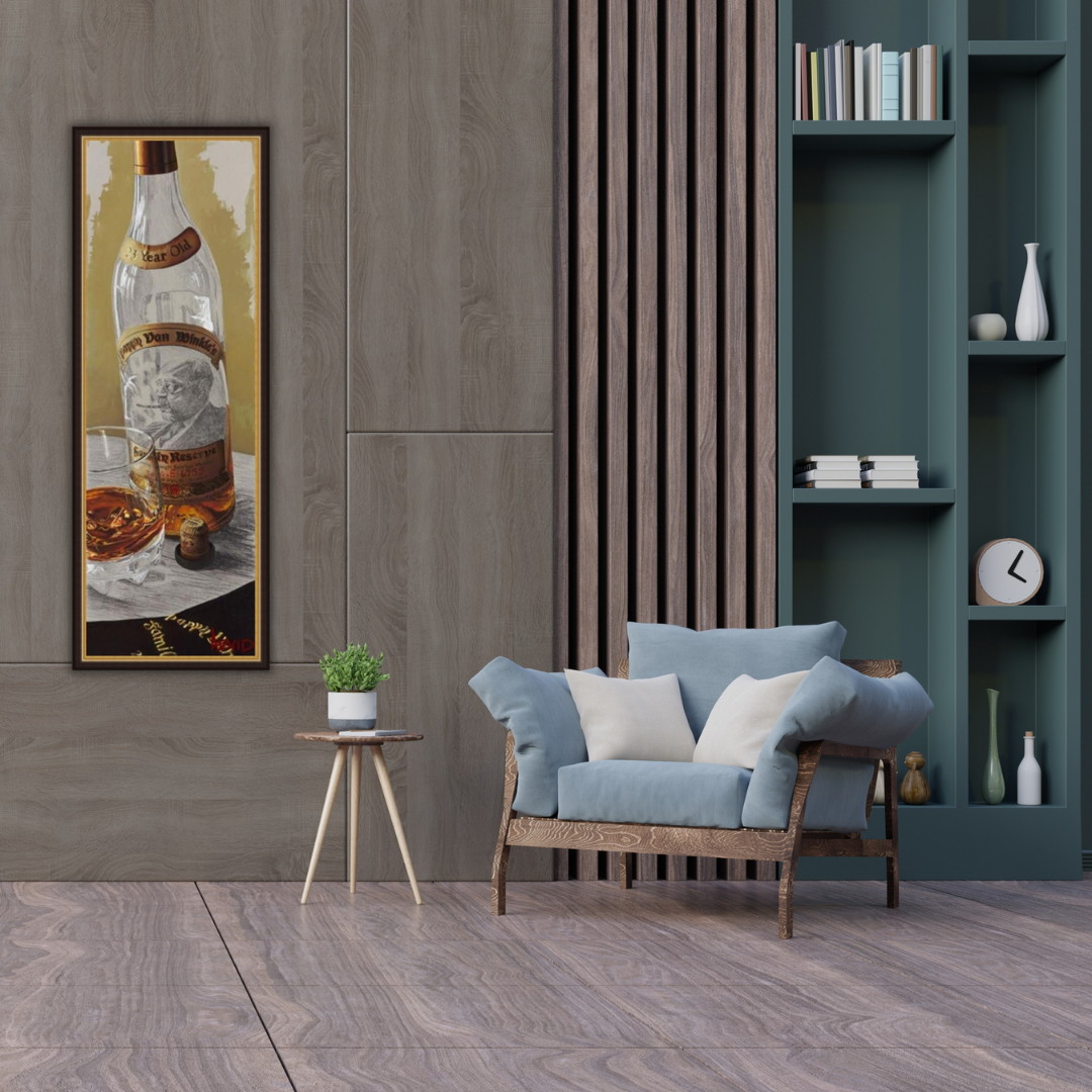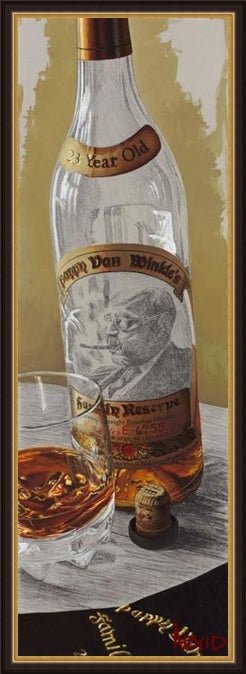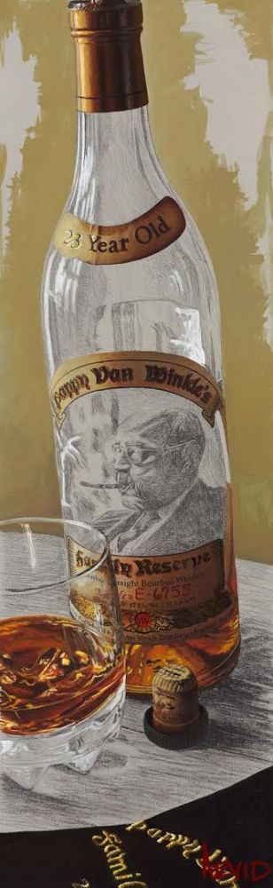 In a departure from his signature style, Arvid deftly displays the gestural hand of the artist in “A Winkle in Time.” While the bourbon in the glass, parts of the label, and the foil reflect the level of clarity and detail Arvid is famous for, he teases us by leaving strategic parts of the painting penciled in. Arvid also takes a natural segue from wine to bourbon. Inspired by sipping fine bourbon after dinner with friends, Arvid captures the inexplicable moment when you make a connection and a memory with someone over something as simple as sharing spirits. Once again, he reminds us to slow down and savor the details, because that is where life happens.
