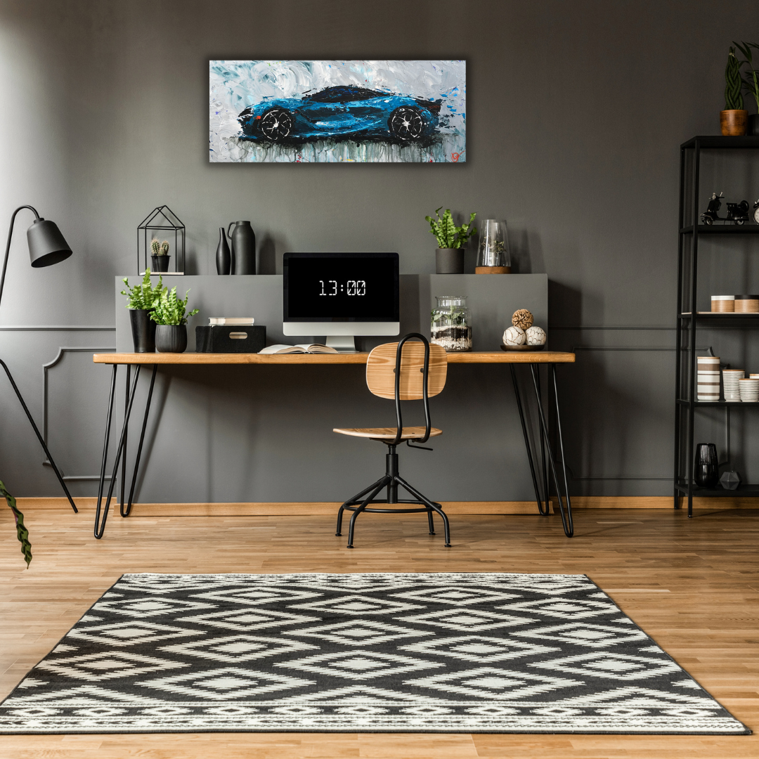 This work is part of her "petrol" series focusing on motorsports. It is gallery wrapped and ready to hang.