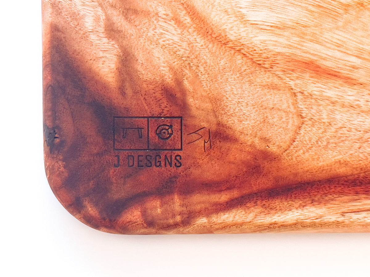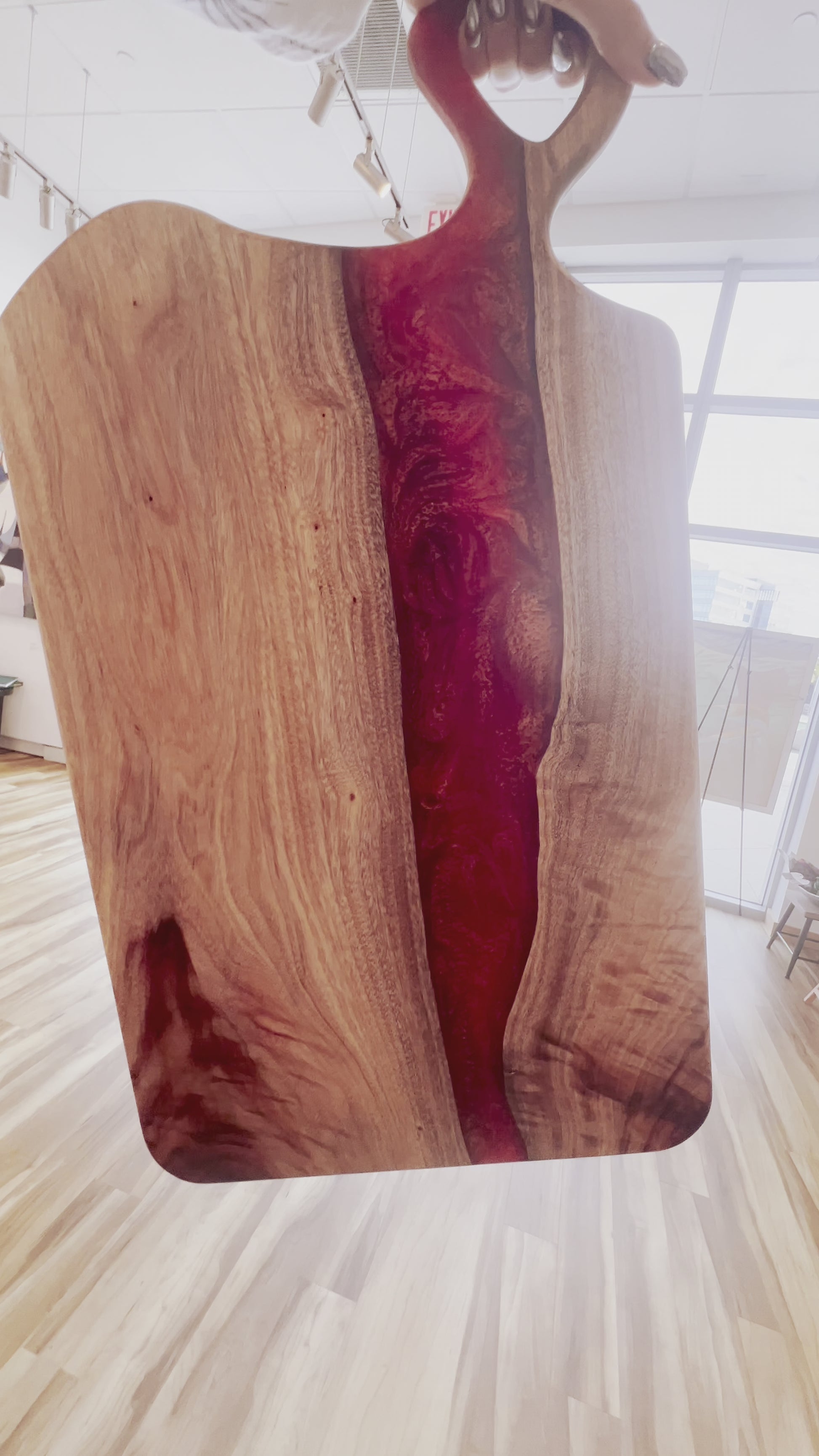 23" x 13" Custom Charcuterie Board created by Jeff Mishtawy of J_Desgns. Using Camphor wood with copper resin, Mishtawy creates a unique, one of a kind household accessory. This piece will make a statement at any dinner party.