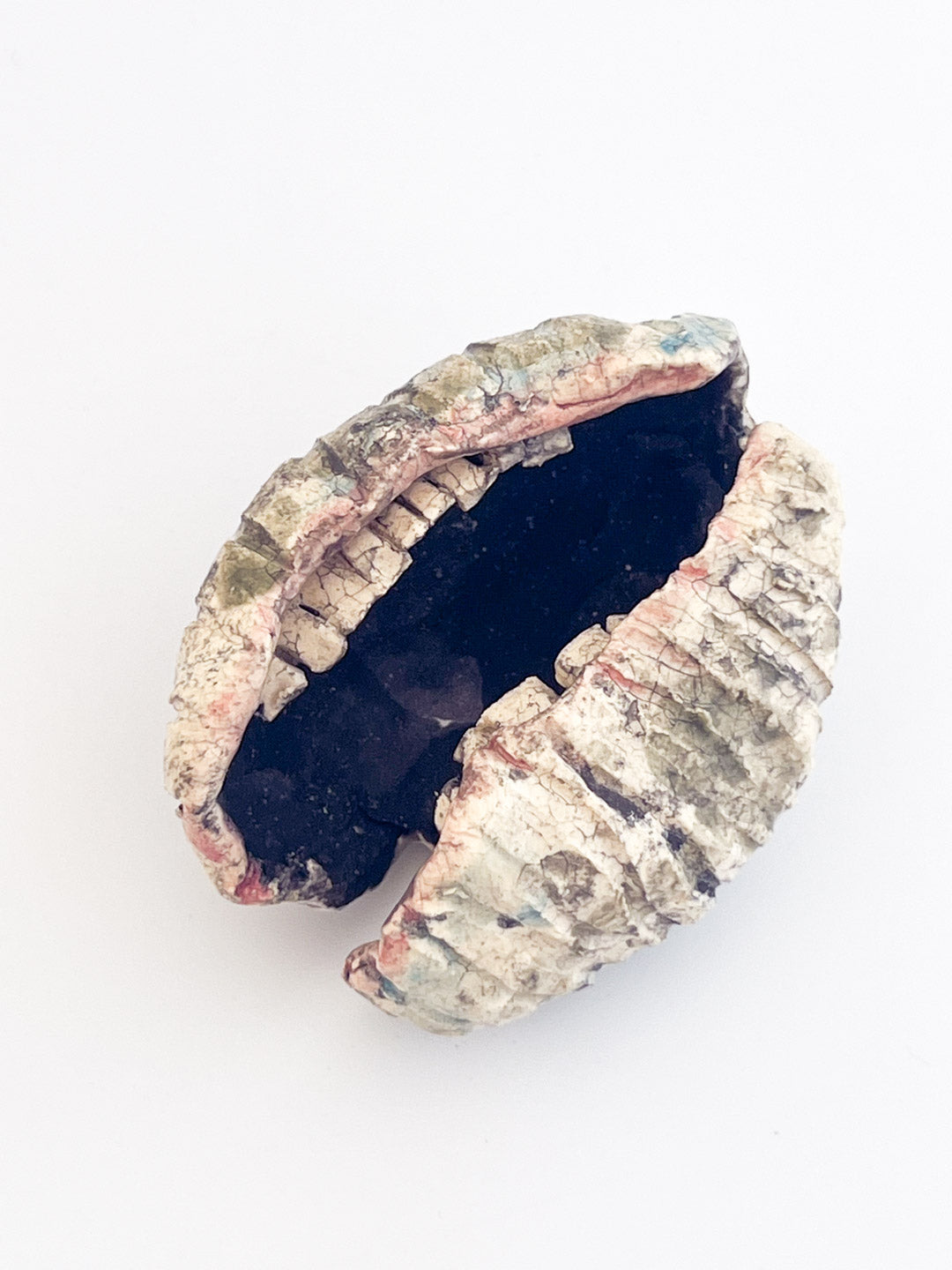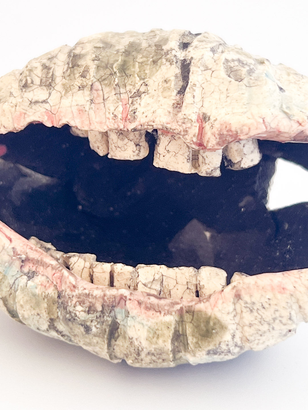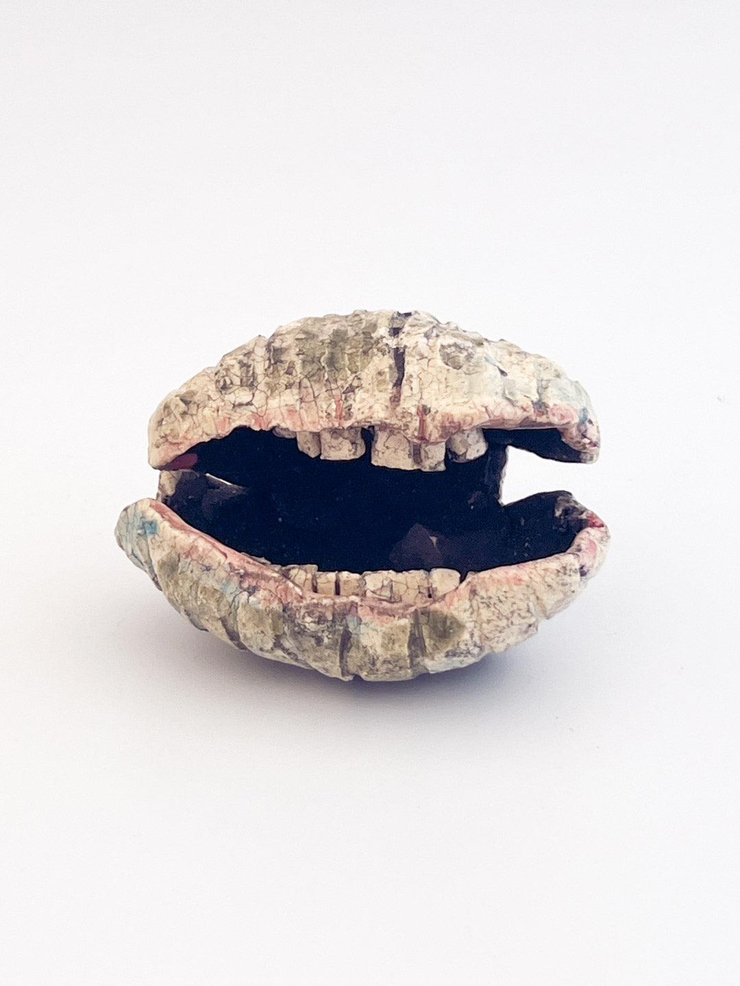 original ceramic sculpture by Julie Latayan. These clams with teeth are part of the artist's imagination coming to life.