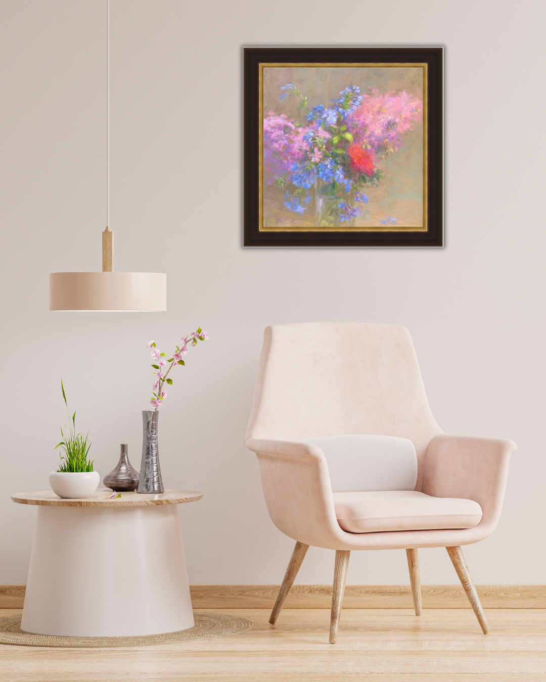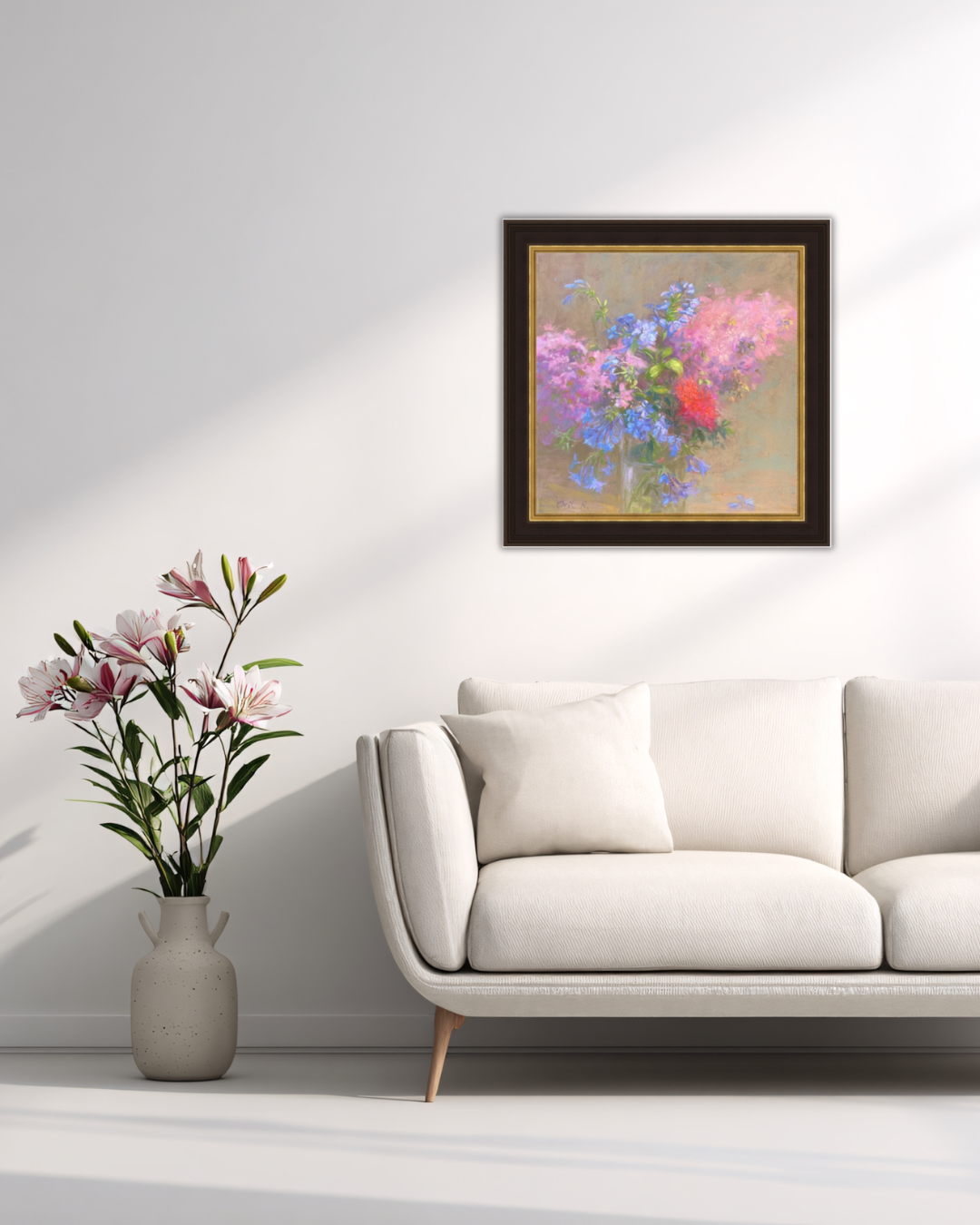 16" x 16" original pastel on paper By Israeli-American Artist Orit Reuben. Reuben is known for her impressionistic use of pastels to focus on light and color. She is currently the only pastel artist at Gallery500.