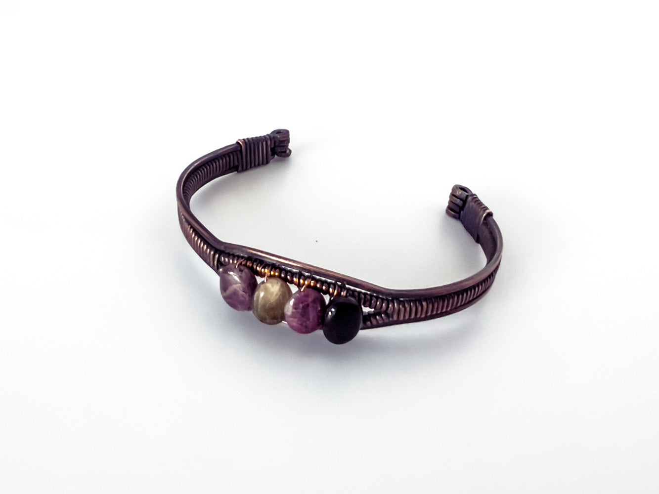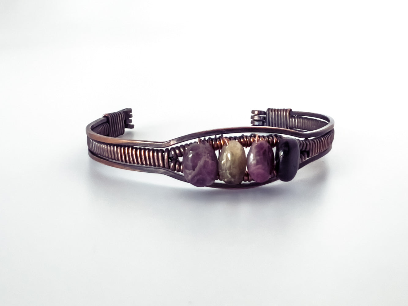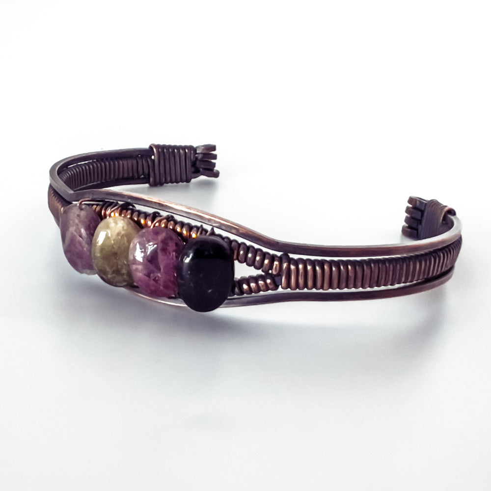 Tourmaline Cuff Bracelet handmade by local jewelry artist Jen Kish of Imaginarium Jewelry. Kish creates this one of a kind cuff using Tourmaline and Copper.