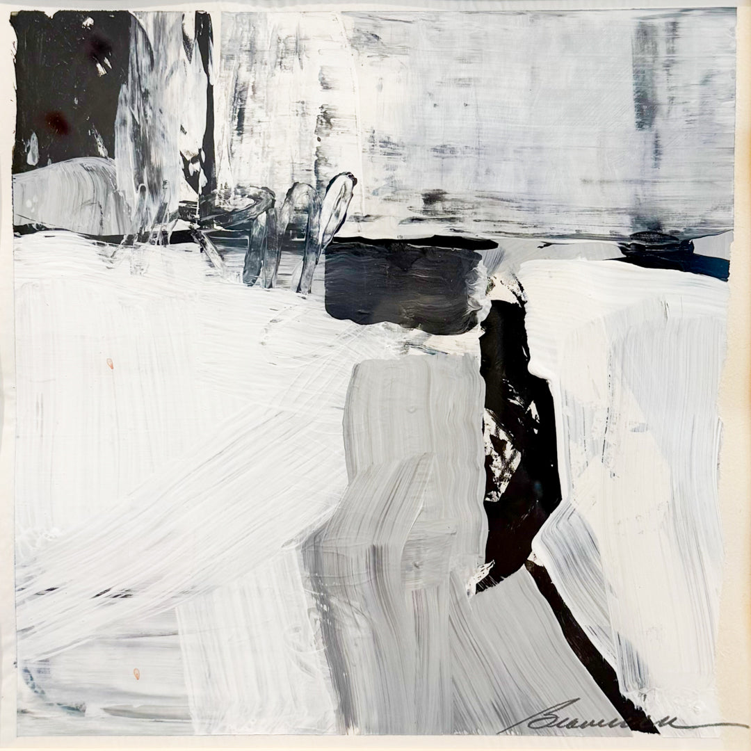Echo of the Wall is an acrylic painting on paper measuring 7.5" x 7.5" unframed and 13" x 13" framed.