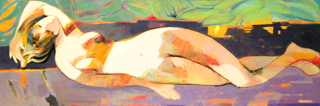 When asked if it is difficult to see a favorite painting leave in the arms of a collector, possibly never to be seen again, Hessam has said, “No, I have enjoyed making it and now I want it to bring happiness to someone else.” Hessam’s approach to art is intuitive and free by nature, yet disciplined by his strong foundation in artistic fundamentals. Inspiration comes from any and all interactions that happen with and around him. This is all encompassing; life, people, animals, love, romance, intimacy, beauty, dance, music, celebration.