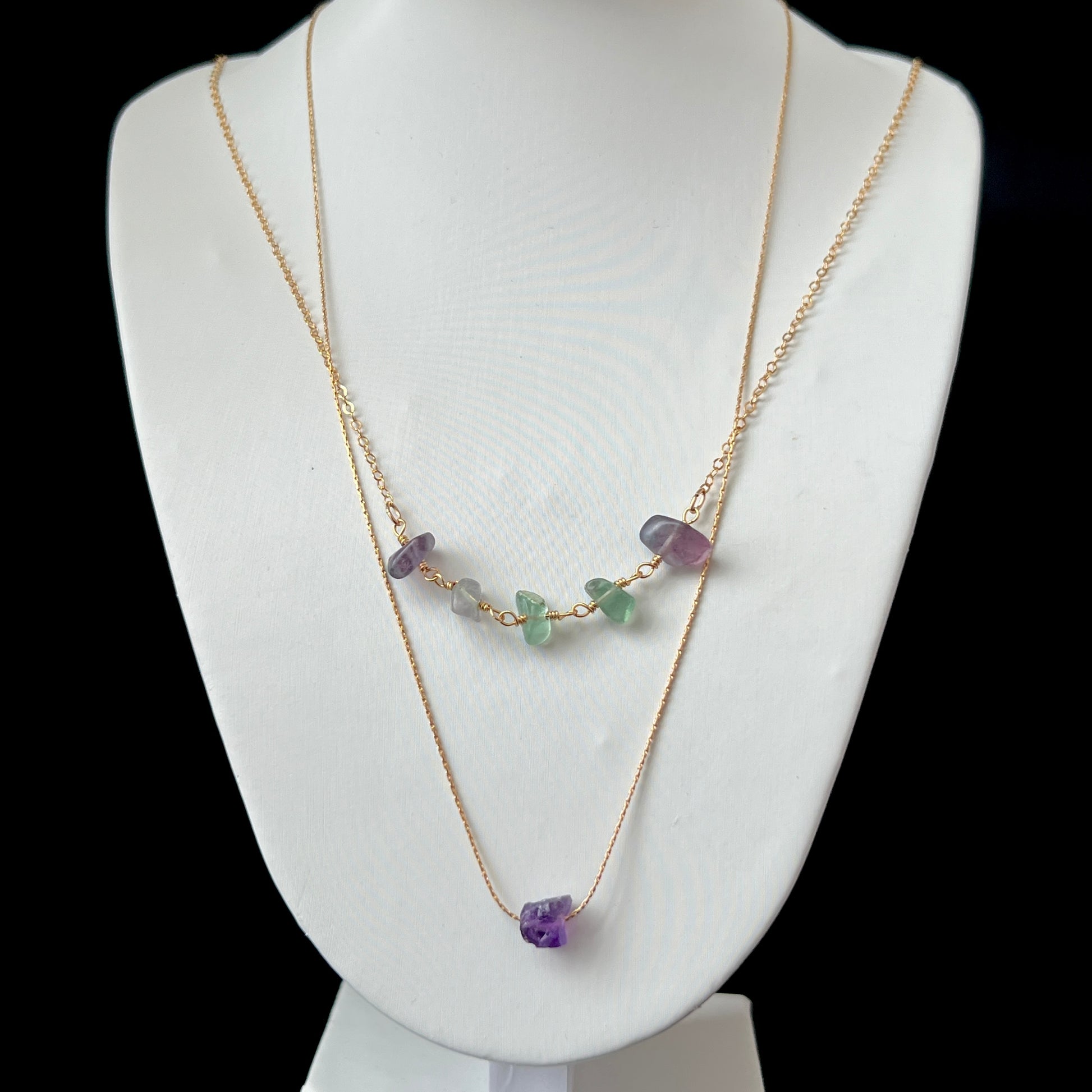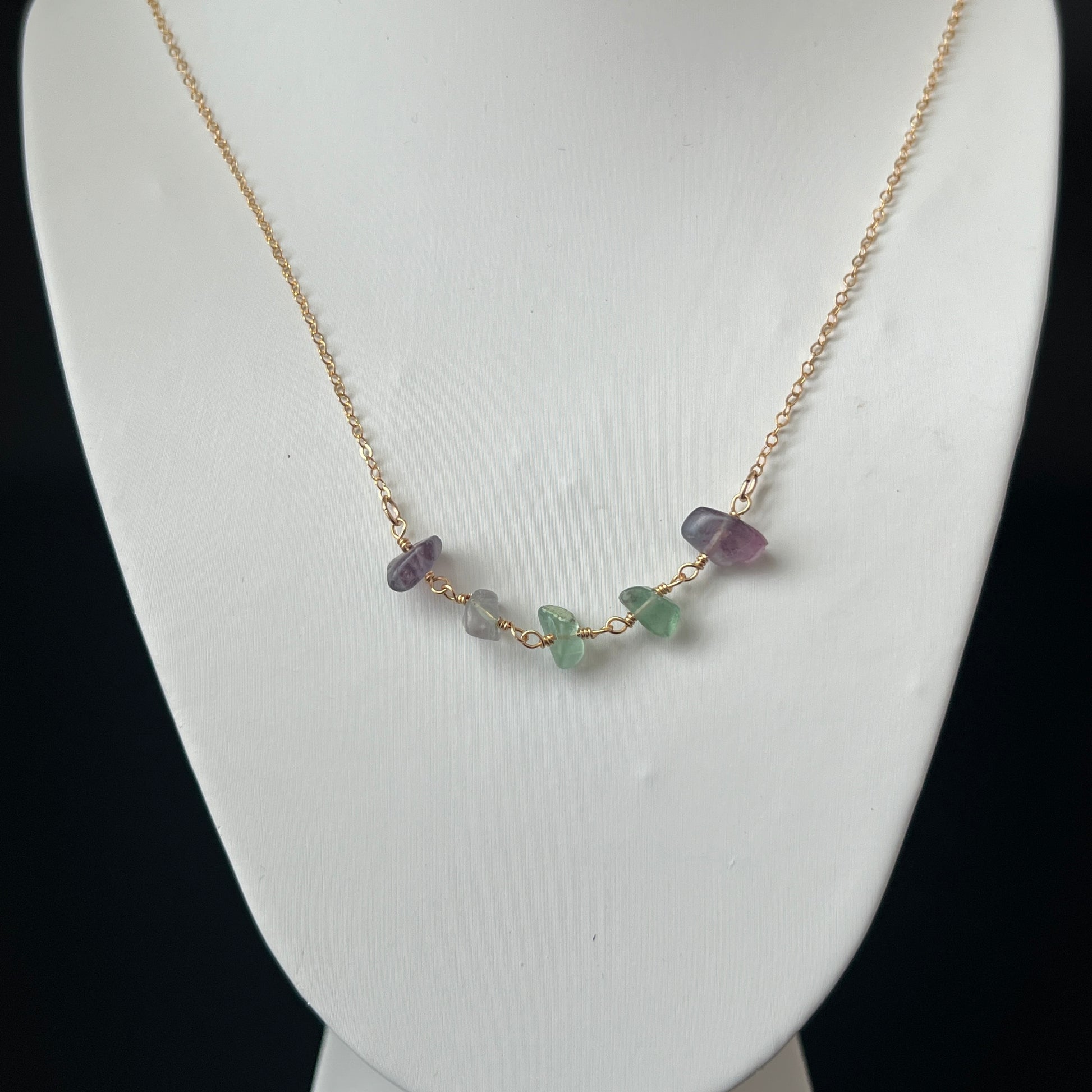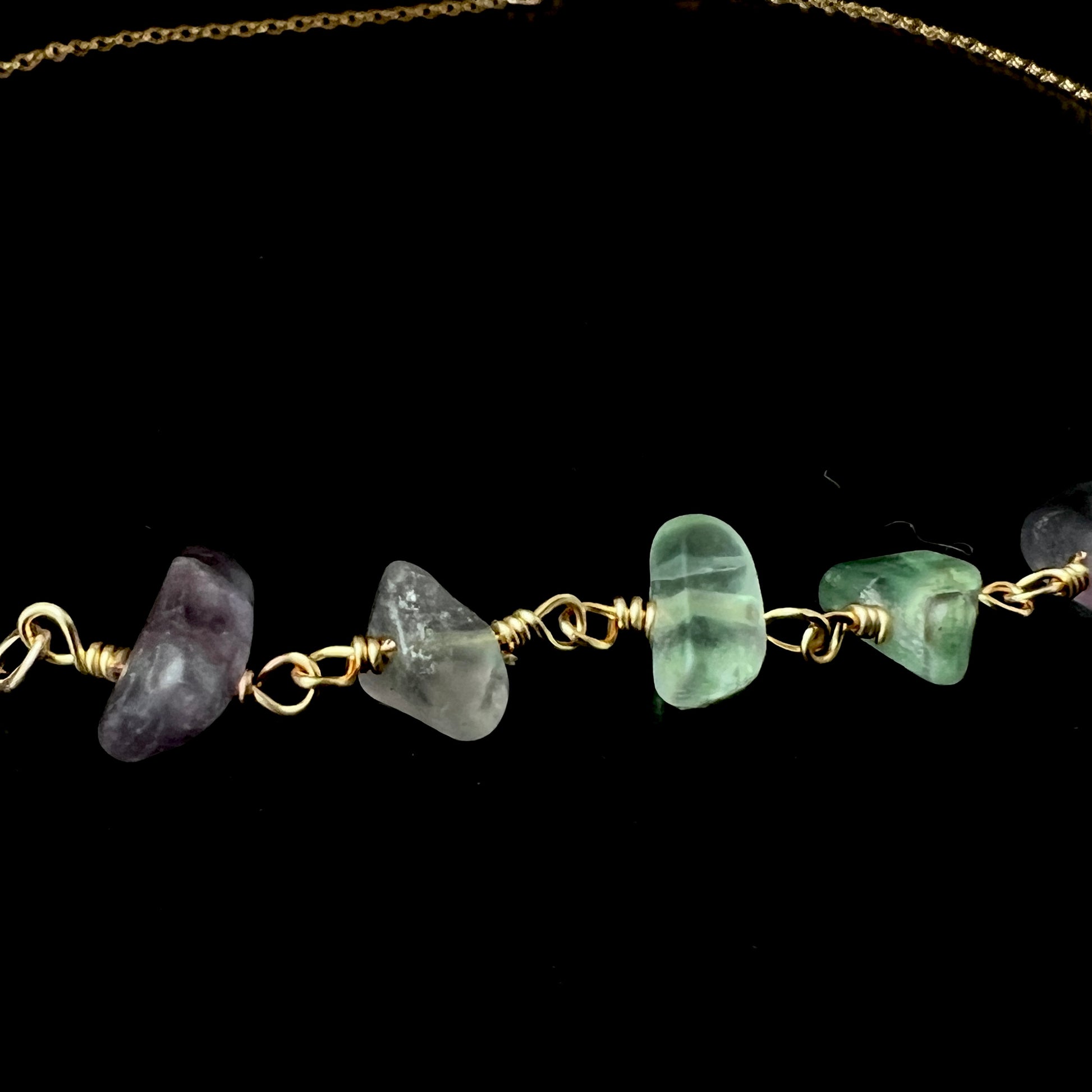 Fluorite Beaded Stone Crystal Gold Chain Necklace