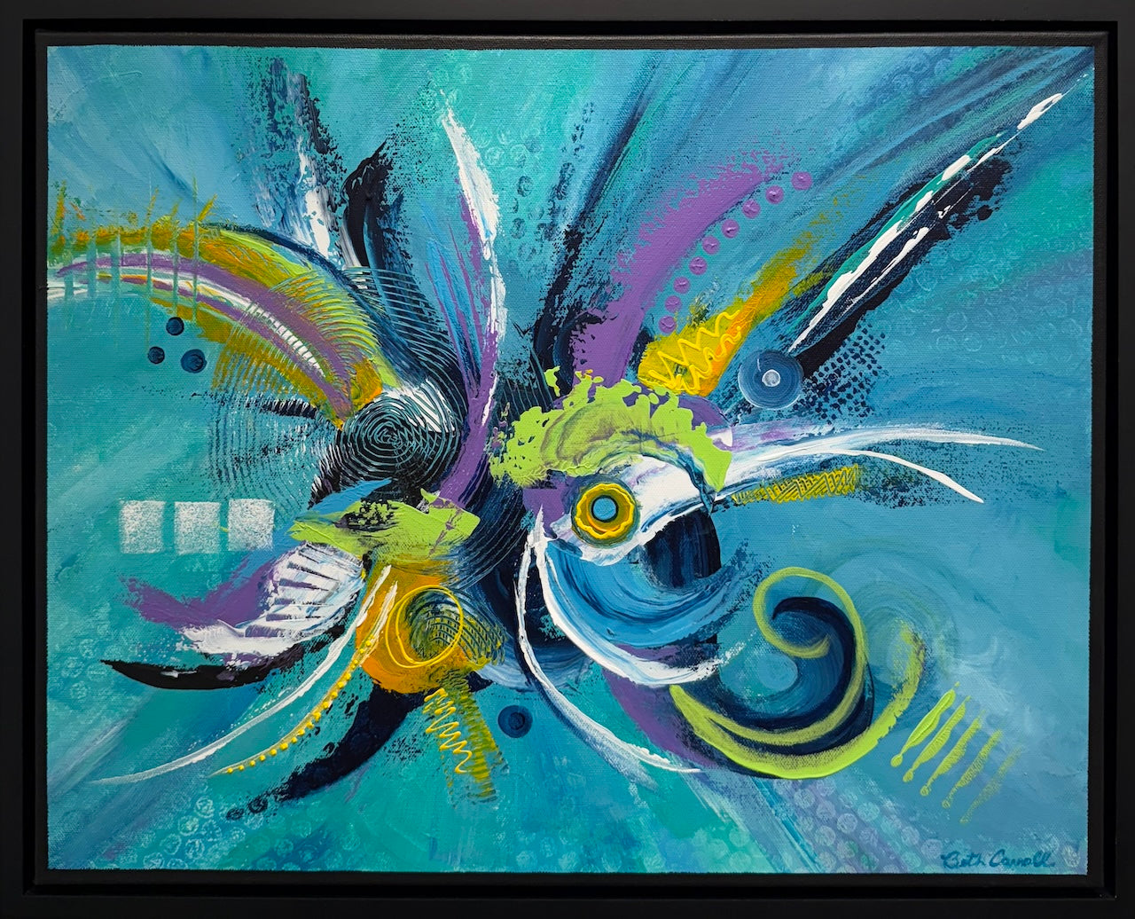 21.25” x 17.25” (framed) original acrylic on canvas by Beth Carroll. The artist is a member of the Florida Women's Arts Association (FLWAA). This work is part of Gallery500's exhibition "50 Shades of Payne's Grey." In this exhibition, FLWAA members interpret the versatile color of Payne's Grey through their own individual lens and media.