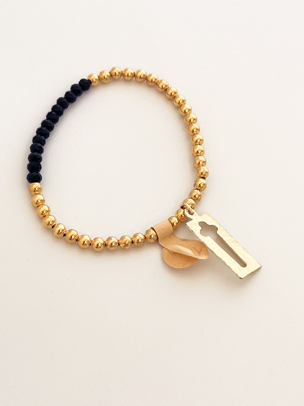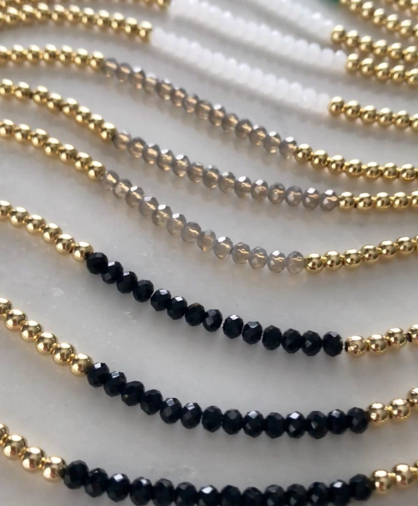 Gold filled beaded bracelet by Florida artist Lisa Brito. Available with accents of moonstone (white), labradorite (grey) or black beads, wear one or multiples for a stacked look.