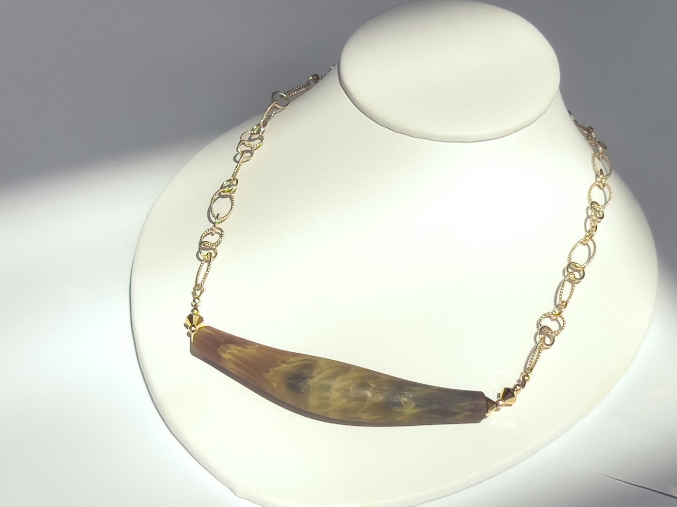 Handcrafted Clay Bead on Gold Filled Chain with Swarovski Crystals Necklace by local jeweler Nancy Neeb. Adjustable gold filled chain necklace with hand crafted clay bead and gold toned Swarovski crystals, perfect for the fall.