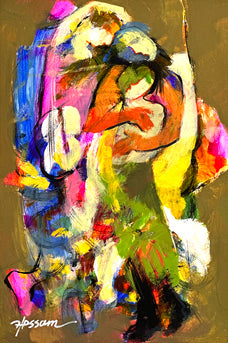When asked if it is difficult to see a favorite painting leave in the arms of a collector, possibly never to be seen again, Hessam has said, “No, I have enjoyed making it and now I want it to bring happiness to someone else.” Hessam’s approach to art is intuitive and free by nature, yet disciplined by his strong foundation in artistic fundamentals. Inspiration comes from any and all interactions that happen with and around him. This is all encompassing; life, people, animals, love, romance, intimacy, beauty, dance, music, celebration.