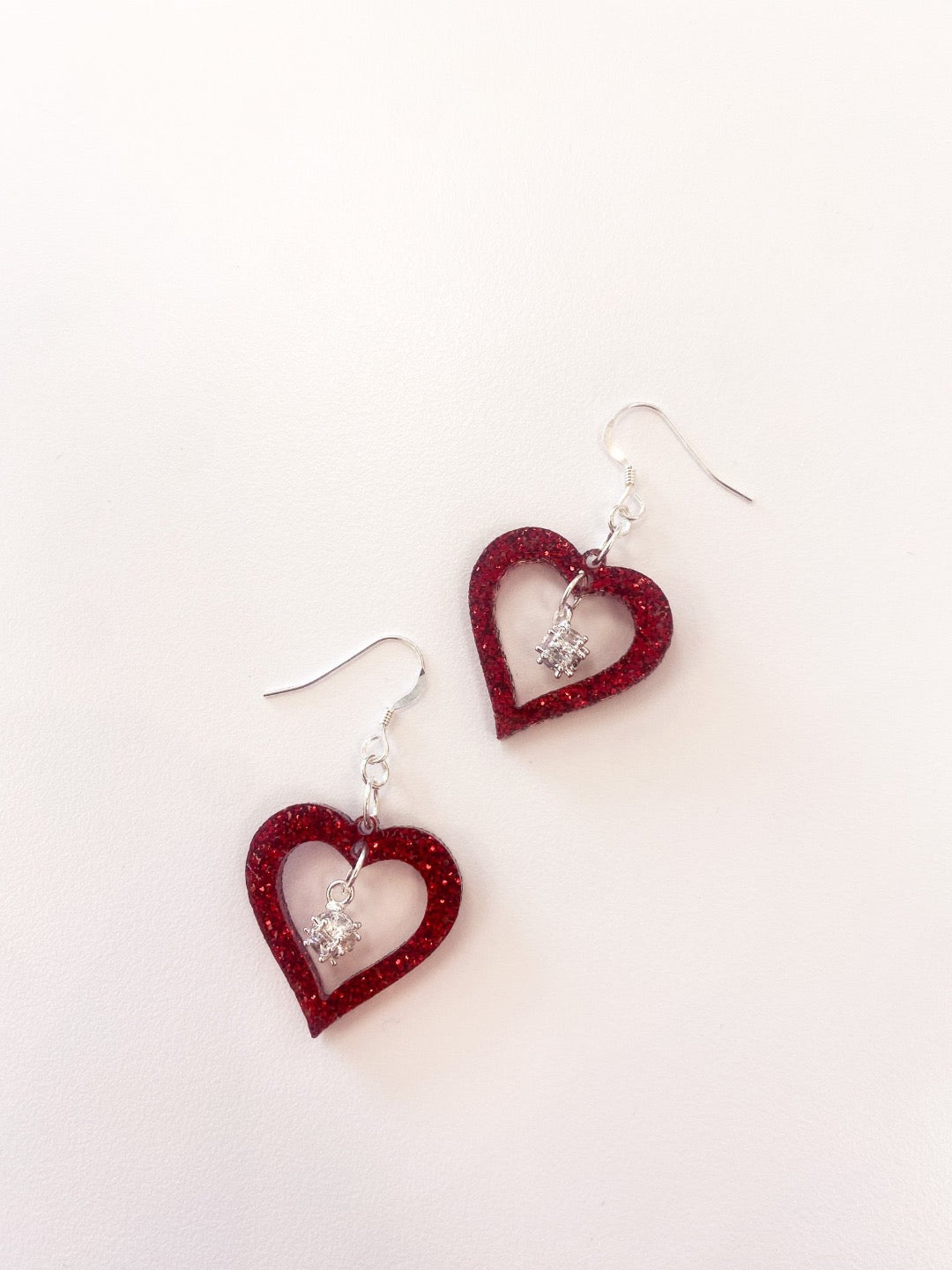 Heart Shaped Resin and Swarovski Earrings by Nancy Neeb. Handmade resin heart shaped earrings with a dangle Swarovski crystal.