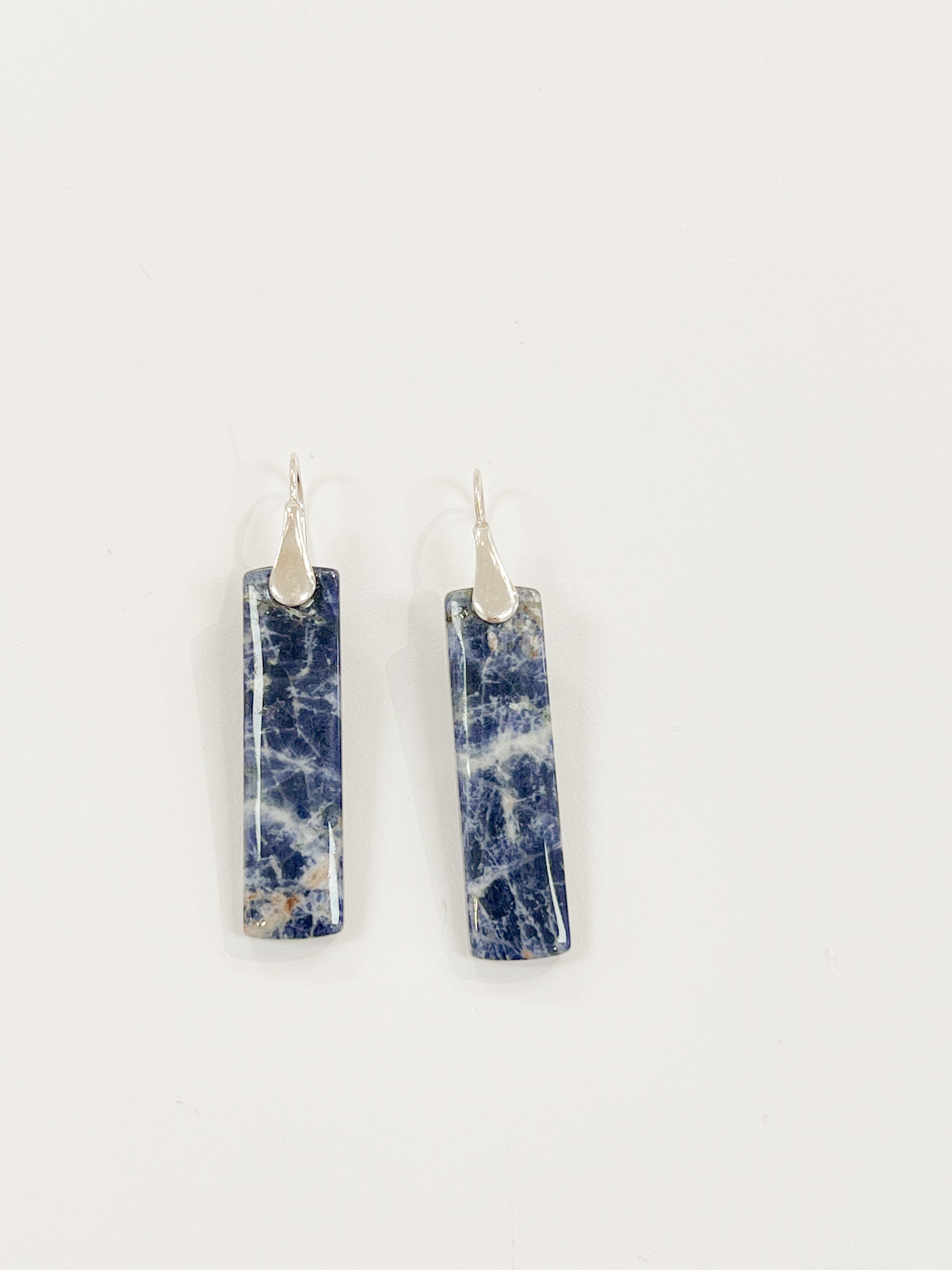 Iolite rectangle earrings by local jeweler Nancy Neeb set in sterling silver.