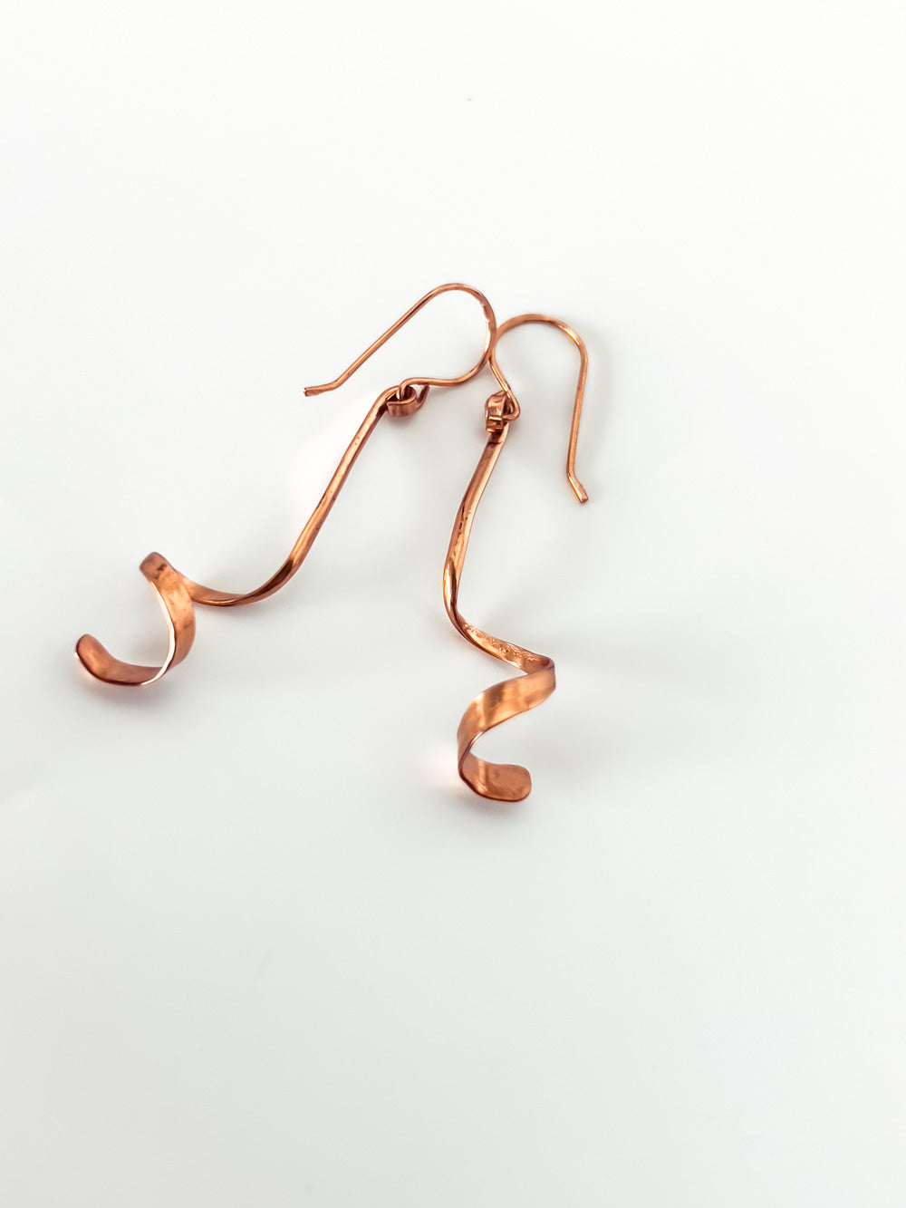 Lacquered Hammered Copper Coiled Earrings handmade by local jewelery artist Jen Kish of Imaginarium Jewelry.