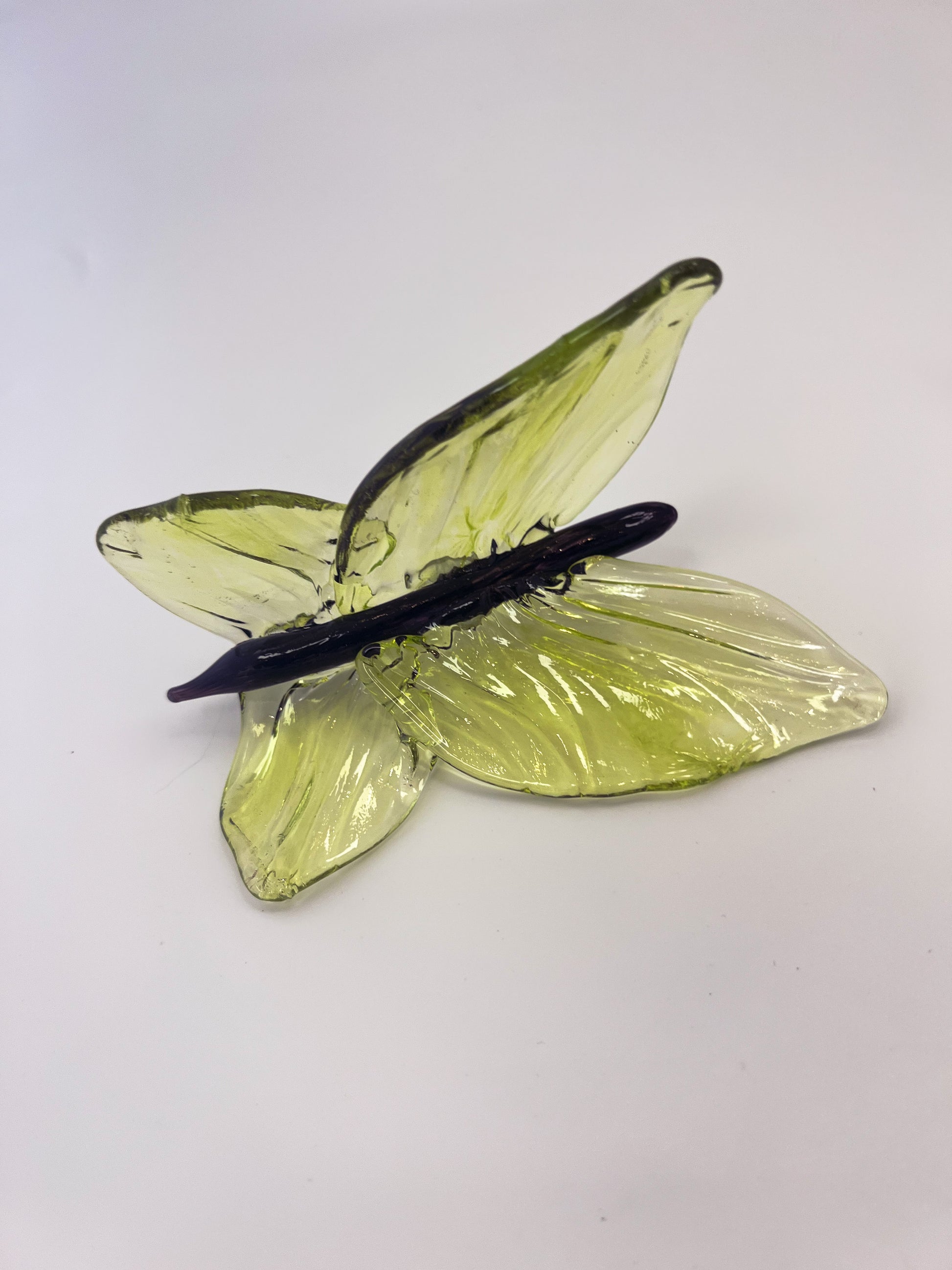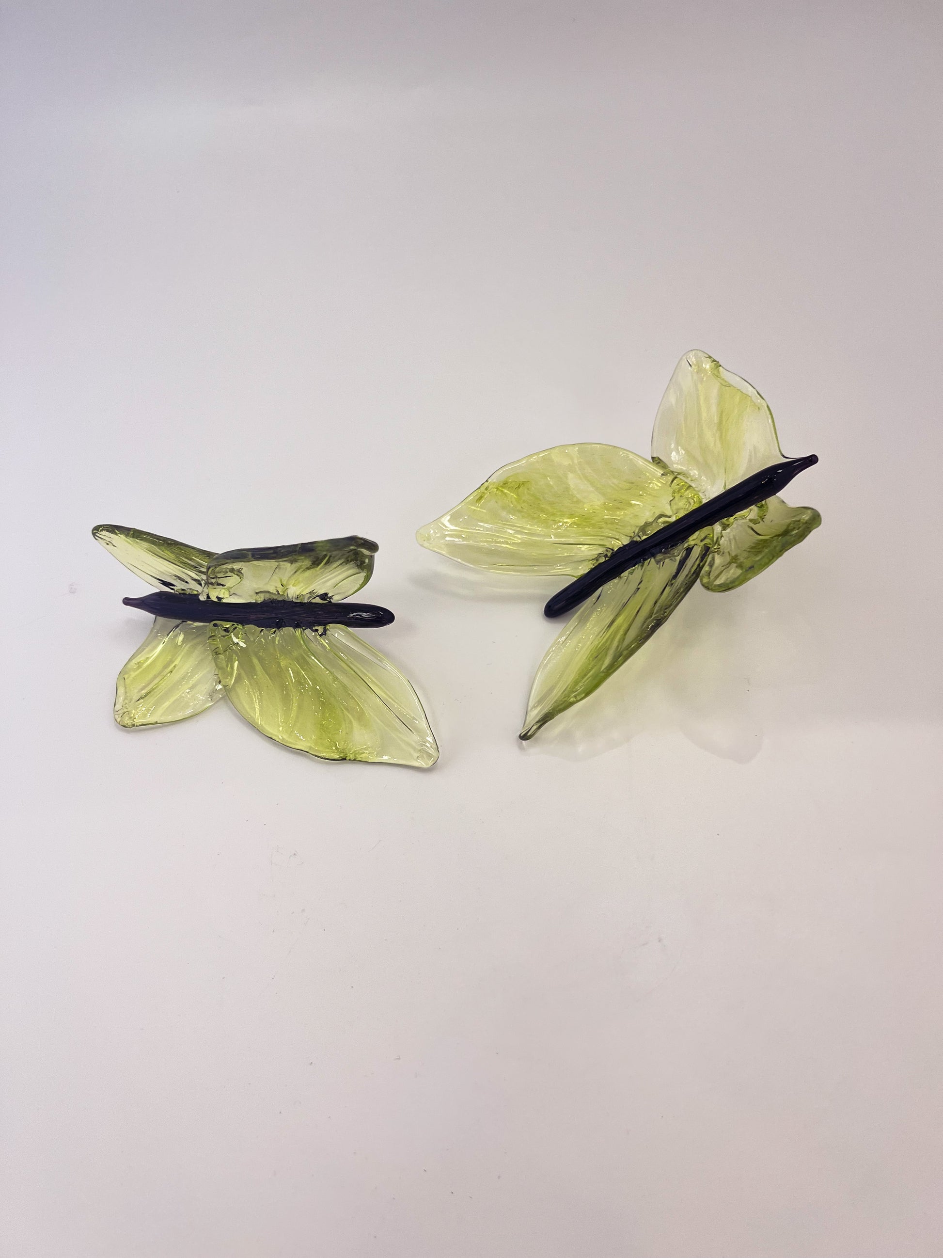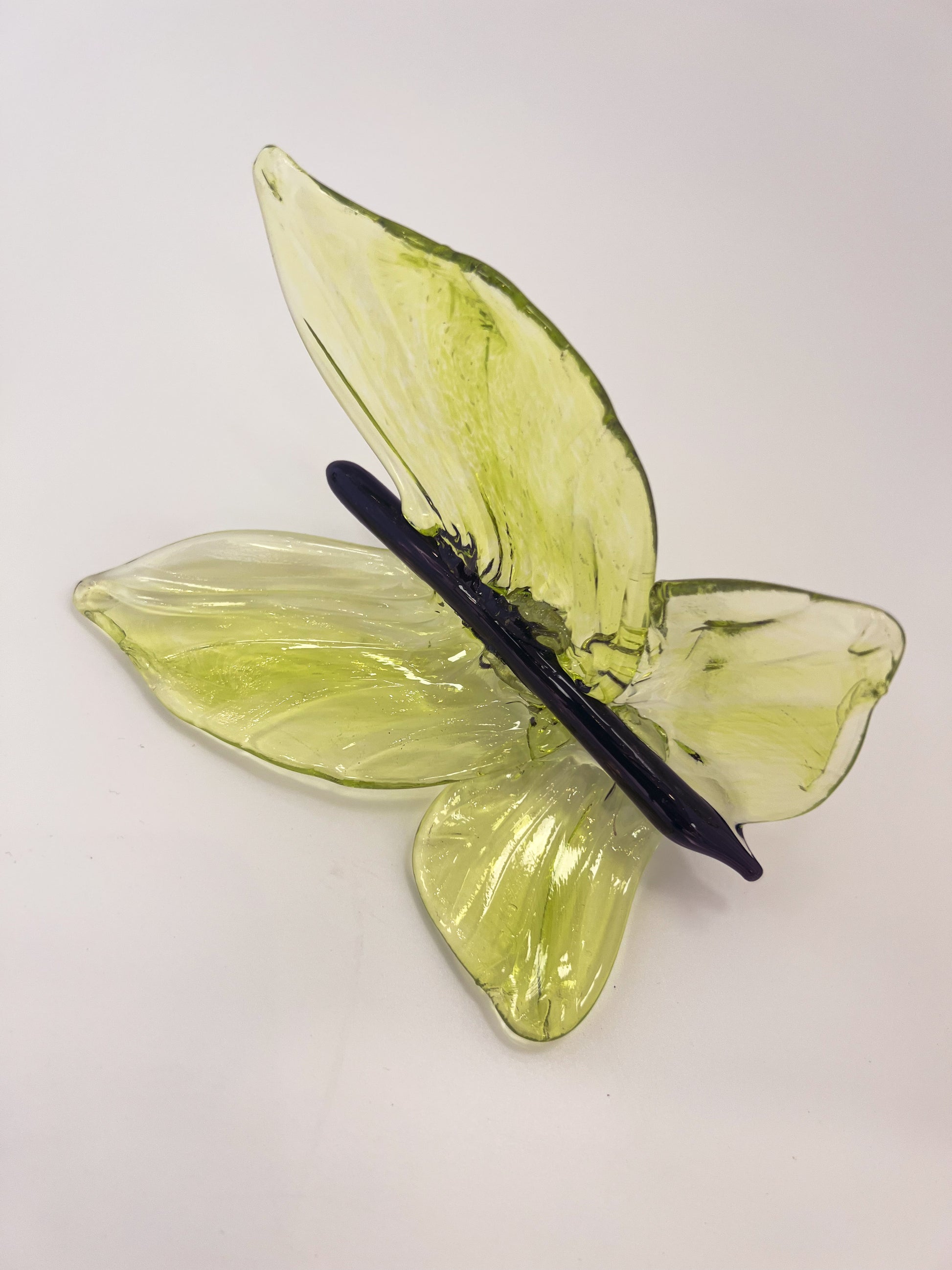 Lime Green glass-blown butterfly that mounts to wall by artist Tim McFadden.