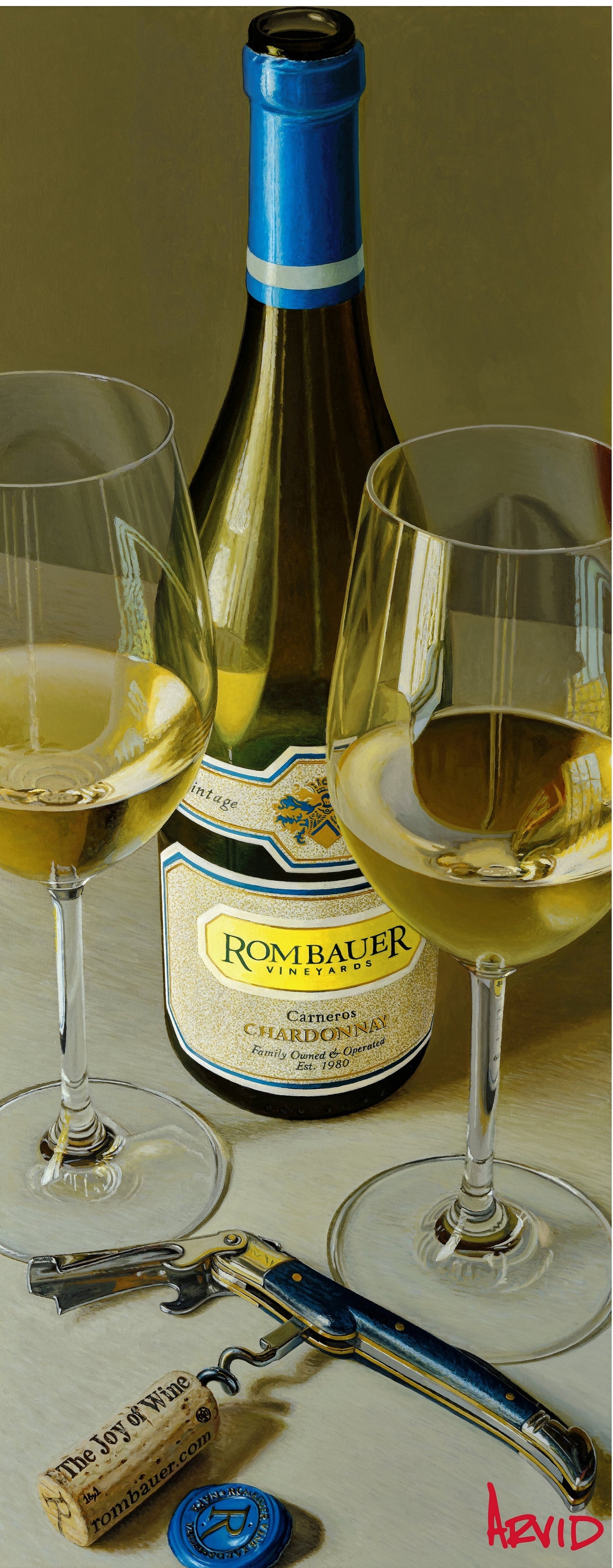 Unconstrained by conventional size, Arvid’s compositions are dictated by the elements in them. Classically composed, the stylish and elegant appeal of his art is a testament to Arvid’s ability to translate the sensory experience of a moment onto canvas. Through the artist’s eyes, we are invited to share in life’s special moments, where there is always a good bottle close at hand.