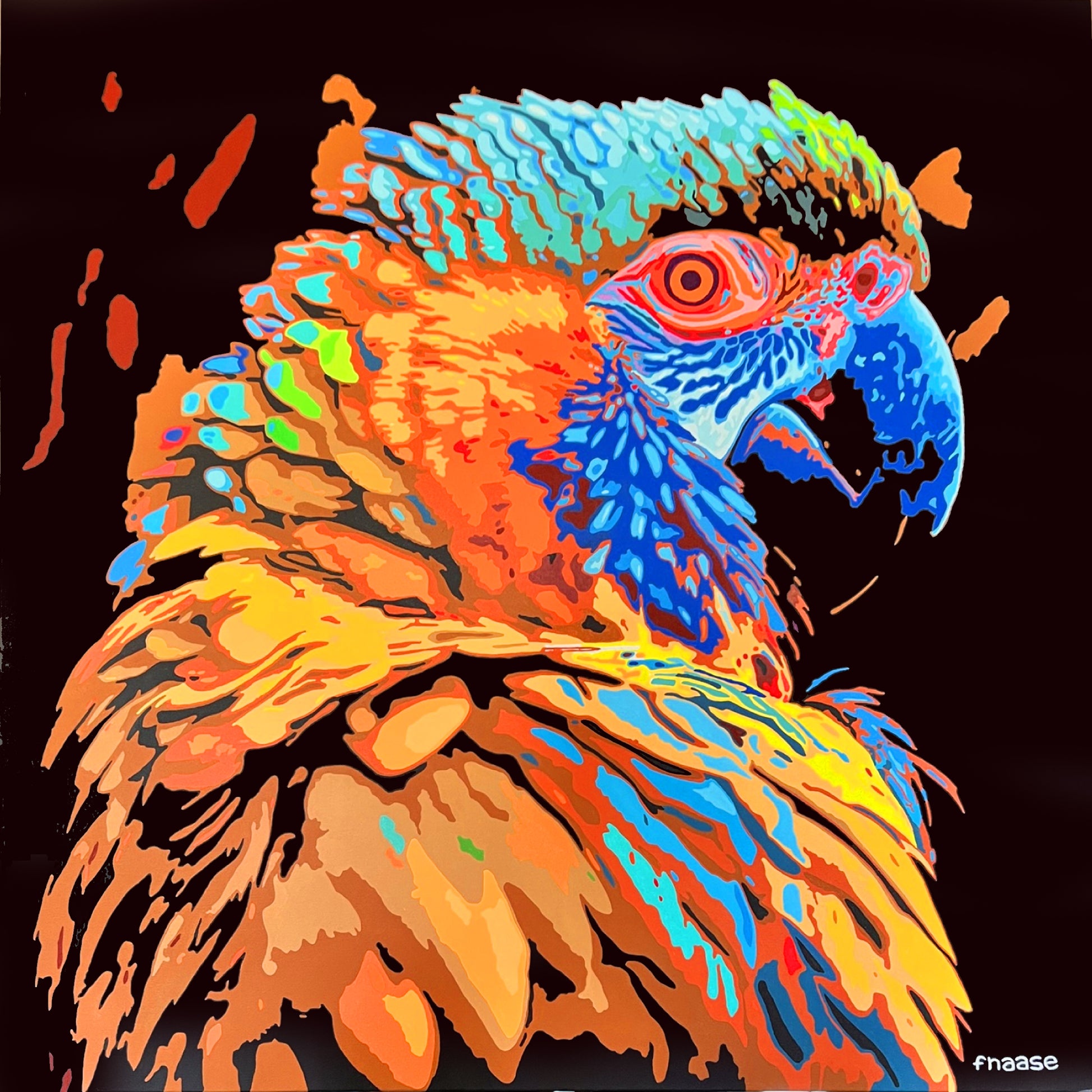 36" X 36" Original acrylic painting on canvas by Fred Haase. Created in his signature style, Haase's work is like no other. The artist often paints ocean life, in addition to automobiles & motorcycles.