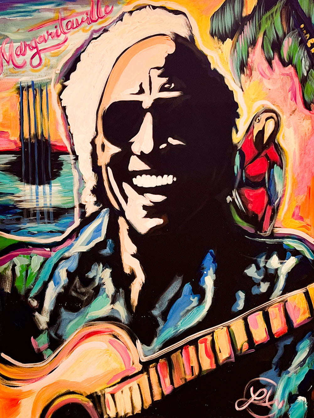 Notecards by North Carolina based artist Laura Ashley. Including some of her most iconic images, including Jimmy Buffet and Dolly Parton, the notecards are blank inside, a perfect canvas to write a note to a special someone. Laura Ashely pays homage to Buffet's tropical aesthetic through her use of vibrant color and loose brush strokes to paint a portrait in paradise.