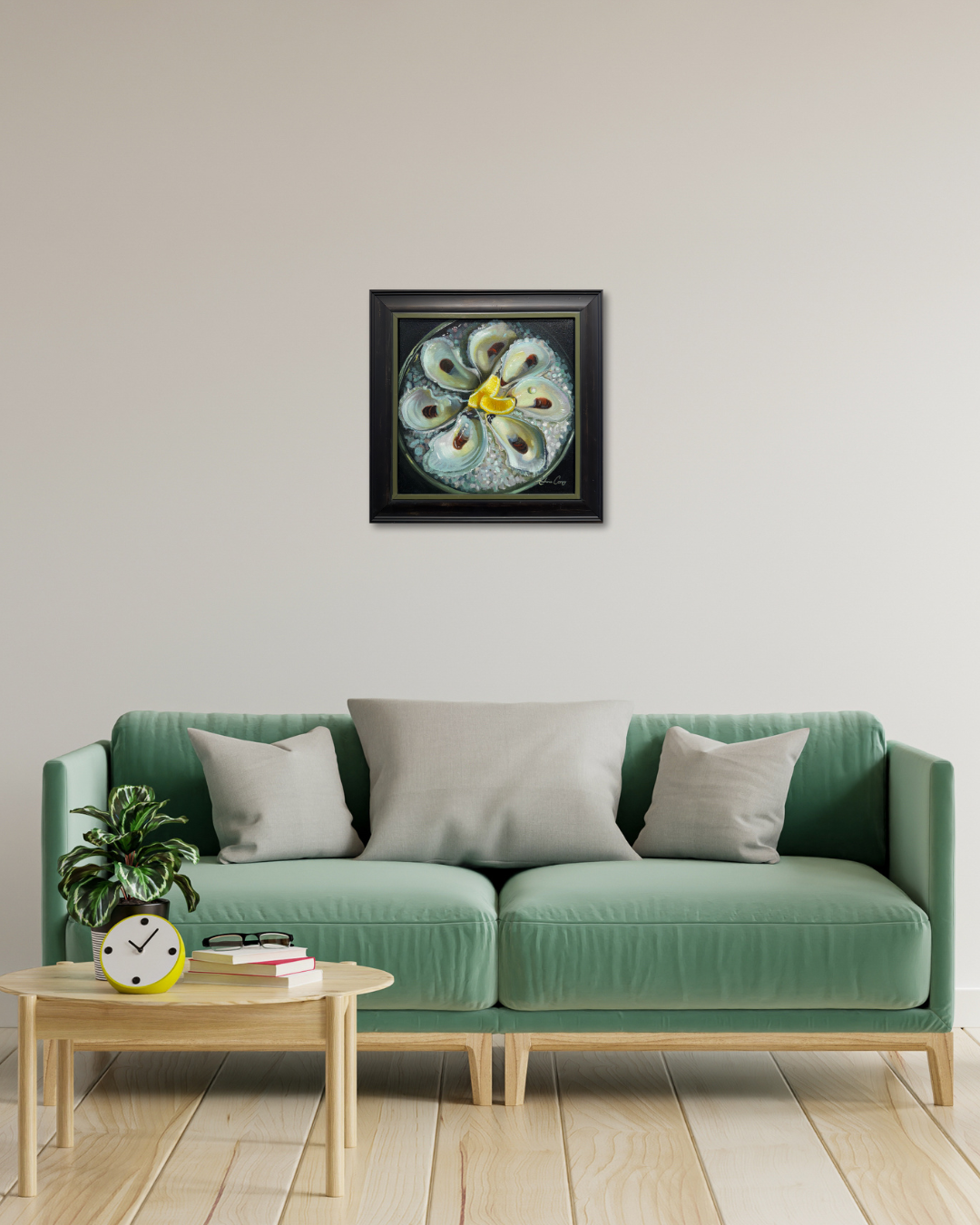 16” x 16” original oil on canvas by Audrina Carey. The artist is a member of the Florida Women's Arts Association (FLWAA). This work is part of Gallery500's exhibition "50 Shades of Payne's Grey." In this exhibition, FLWAA members interpret the versatile color of Payne's Grey through their own individual lens and media.