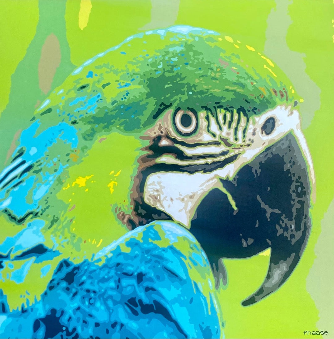 36" X 36" Original acrylic painting on canvas by Fred Haase. Created in his signature style, Haase's work is like no other. The artist often paints ocean life, in addition to automobiles & motorcycles.