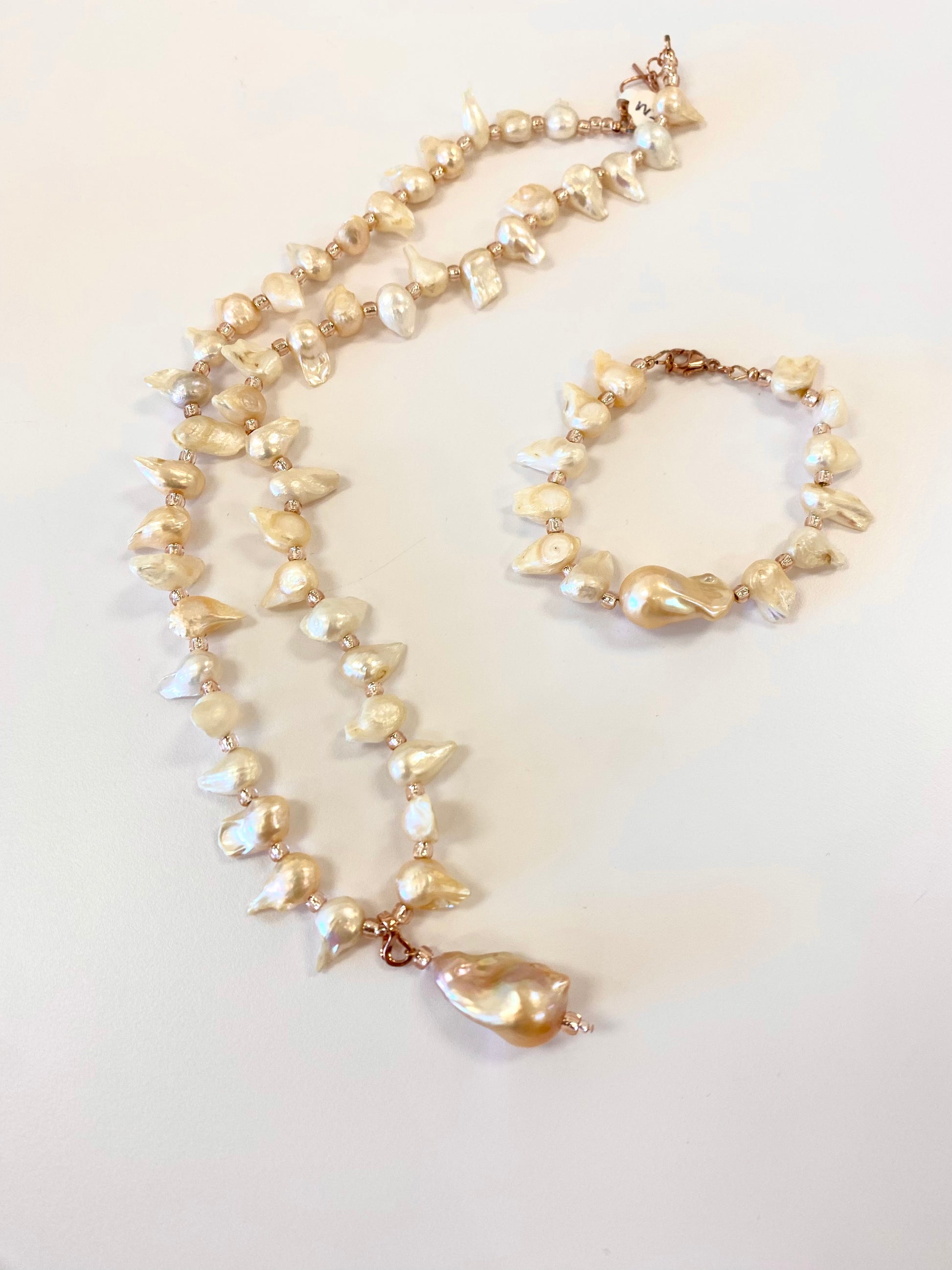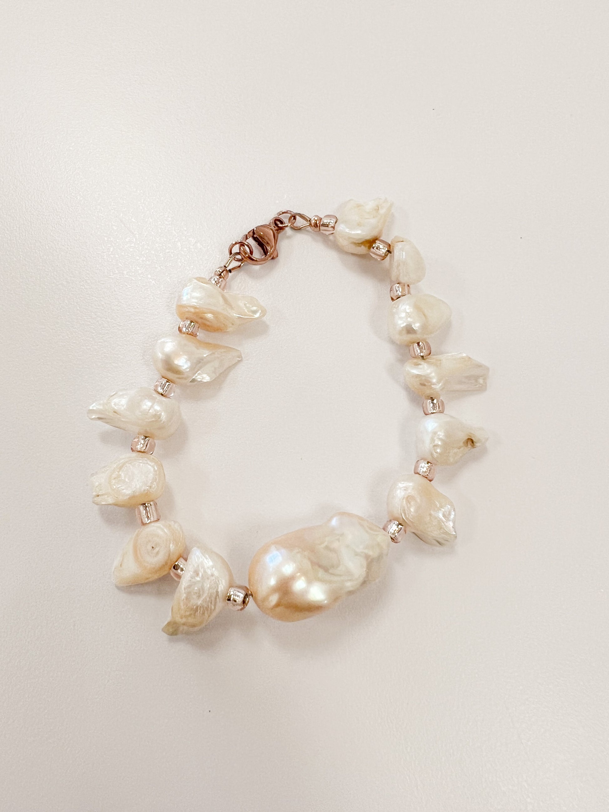Champagne colored fresh water pearl bracelet by Cathy Miller. With a rose gold filled clasp, wear alone or with the matching necklace.