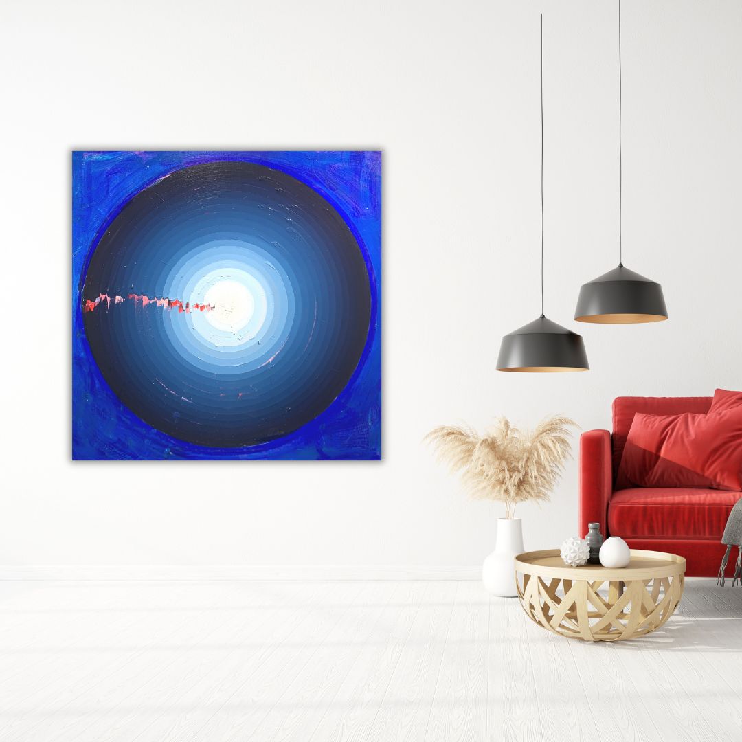 Pink Vortex Line by Juan Sanz measures 48" x 48" and is an original acrylic painting on canvas.