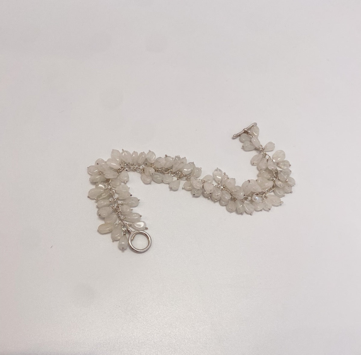Sterling silver bracelet by Jen Kish of Imaginarium. Made with oval shaped rainbow moonstone beads.