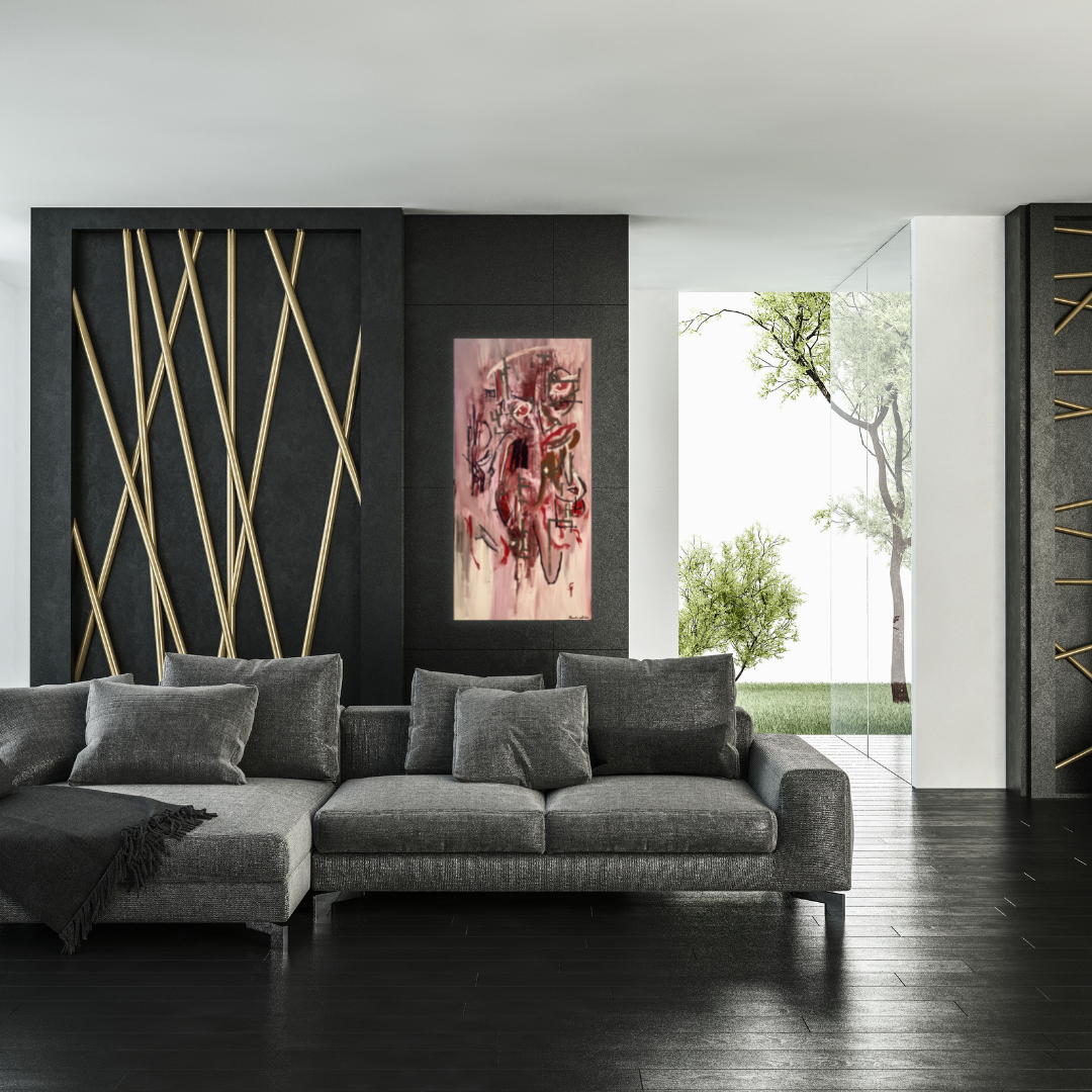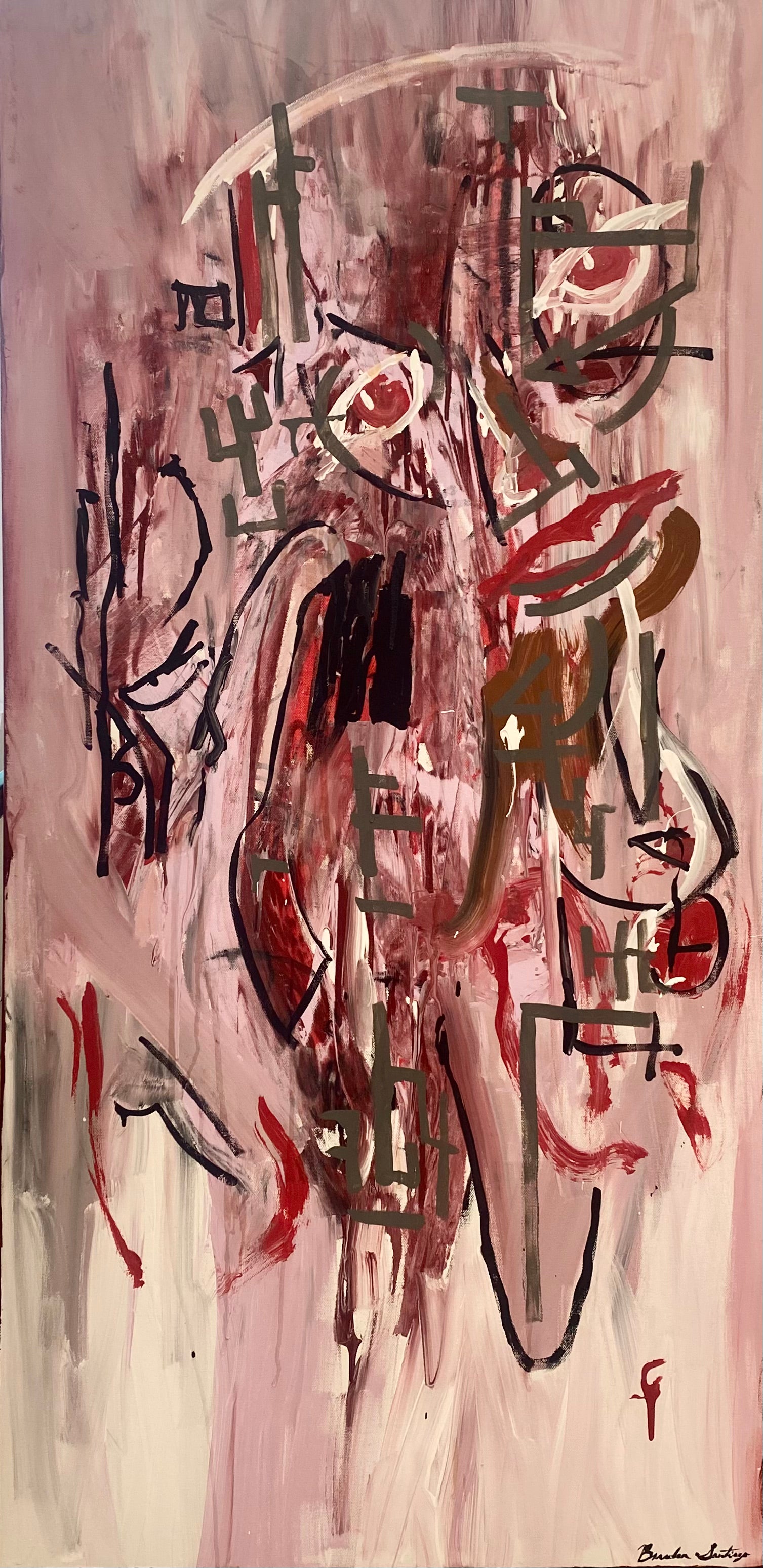 24" x 48" original acrylic on canvas by Florida artist Brandon Santiago. Santiago paints intuitively, allowing forms and shapes to arise naturally. This work is part of the artist's "hybrid" series, blending classic figure drawing with expressionist intuitive style painting. As an artist, Santiago is continually experimenting themes, techniques and styles in order to grow as an artist. Although young for his age, he aspires to accomplish great things, and be a great artist.
