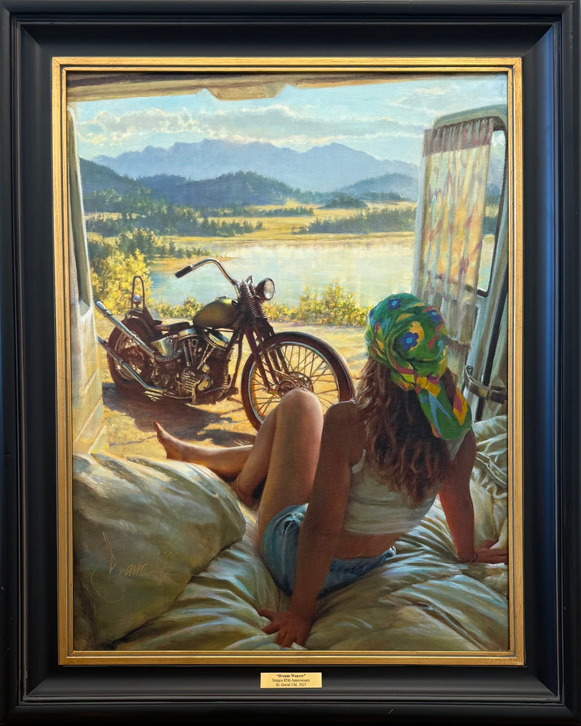 David Uhl was born into a family of engineers and artists which made him particularly suited for capturing the lifestyle inherent in motorcycling culture. After several years at the helm of Uhl Studios, an award-winning illustration company, David fulfilled his desire to move into Fine Art. In 1998, he created his first oil painting and, upon taking it to Harley-Davidson headquarters in Milwaukee, he was eagerly welcomed as the first ever licensed oil painter for The Motor Company.