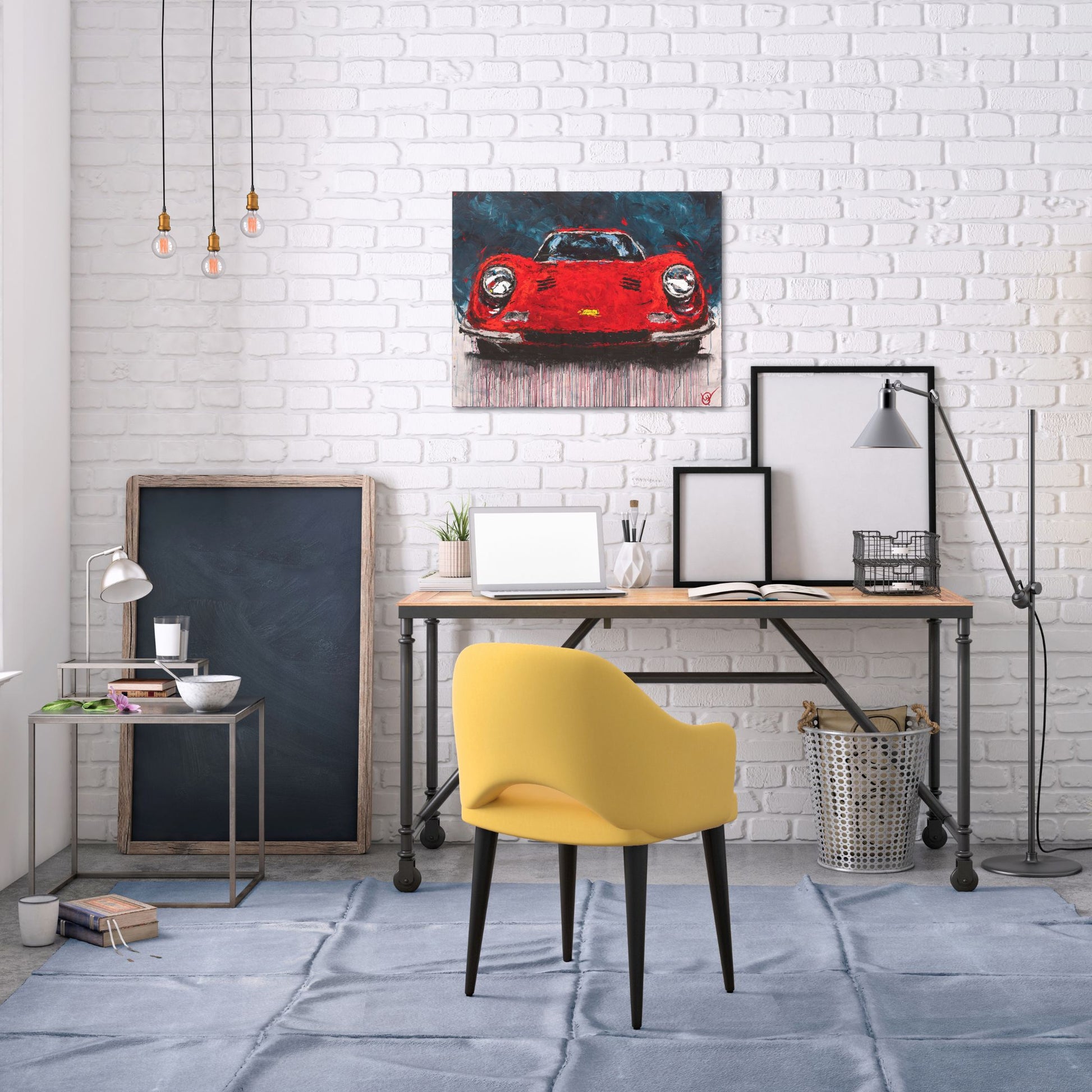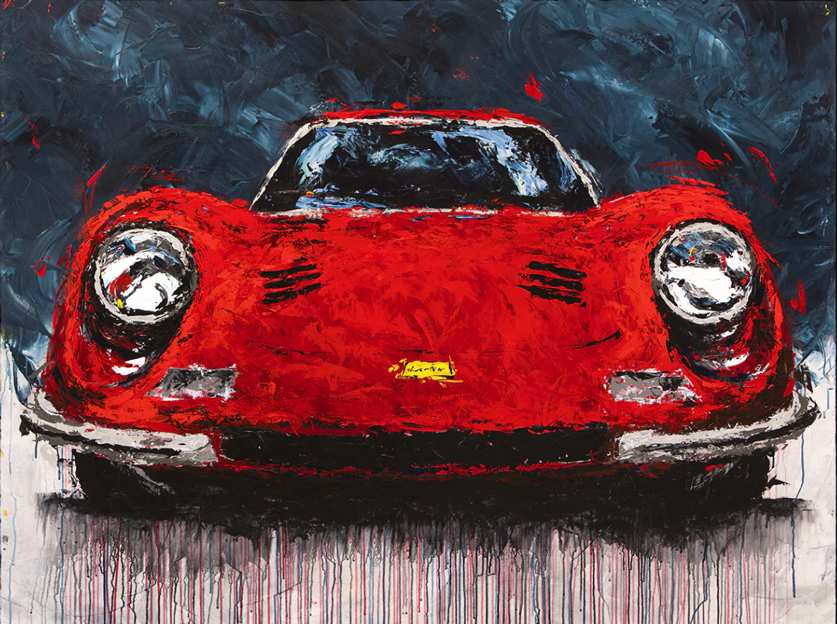 30" x 24" Limited Edition on canvas by artist Lyn Hiner featuring a 1973 Dino 246 GTS