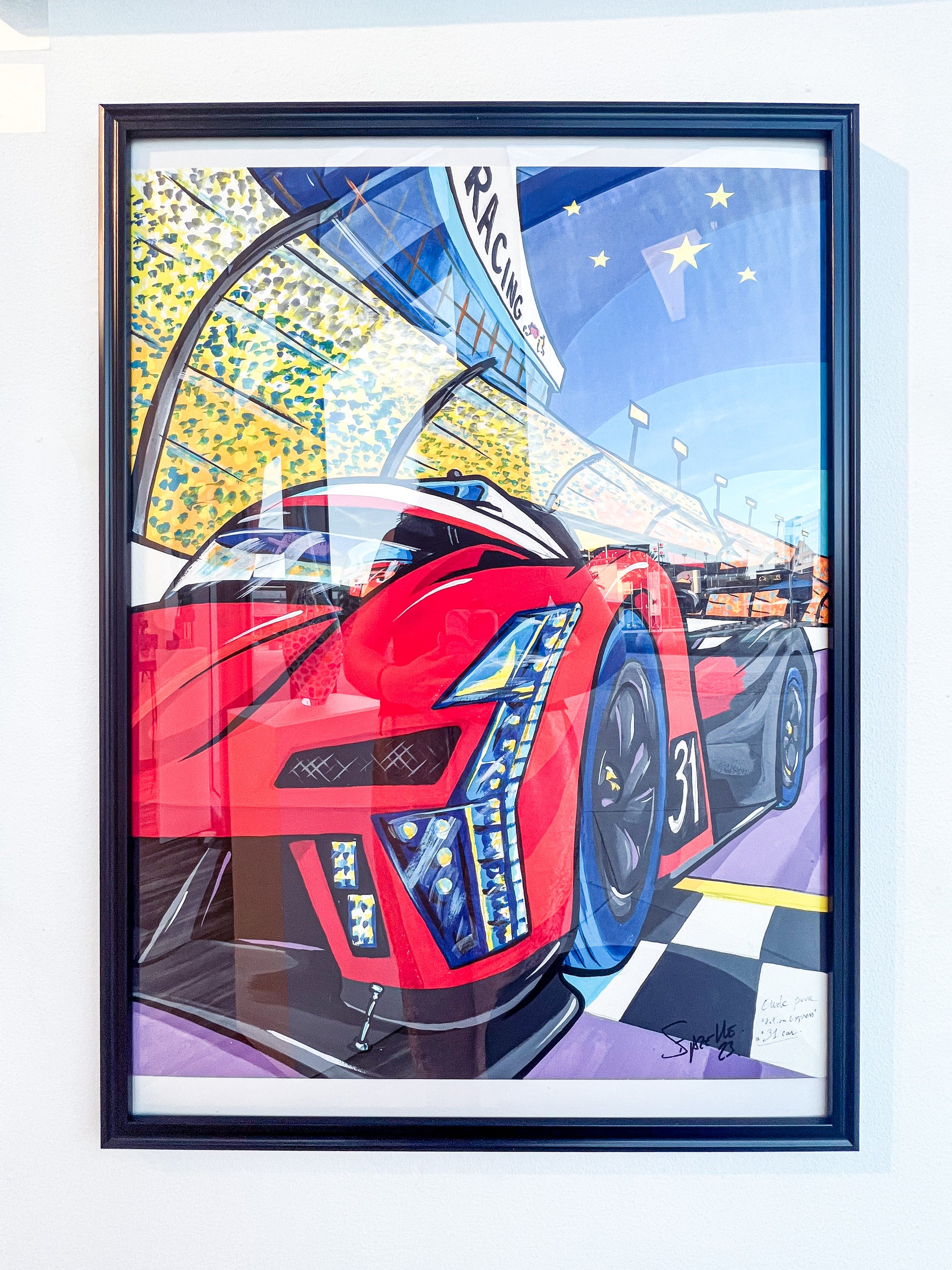 21" x 29" original acrylic on paper by Erwin Dazelle. Known for his iconic bold style, Dazelle is inspired by stained glass. The artist evokes excitement in his work, bringing color to any space.