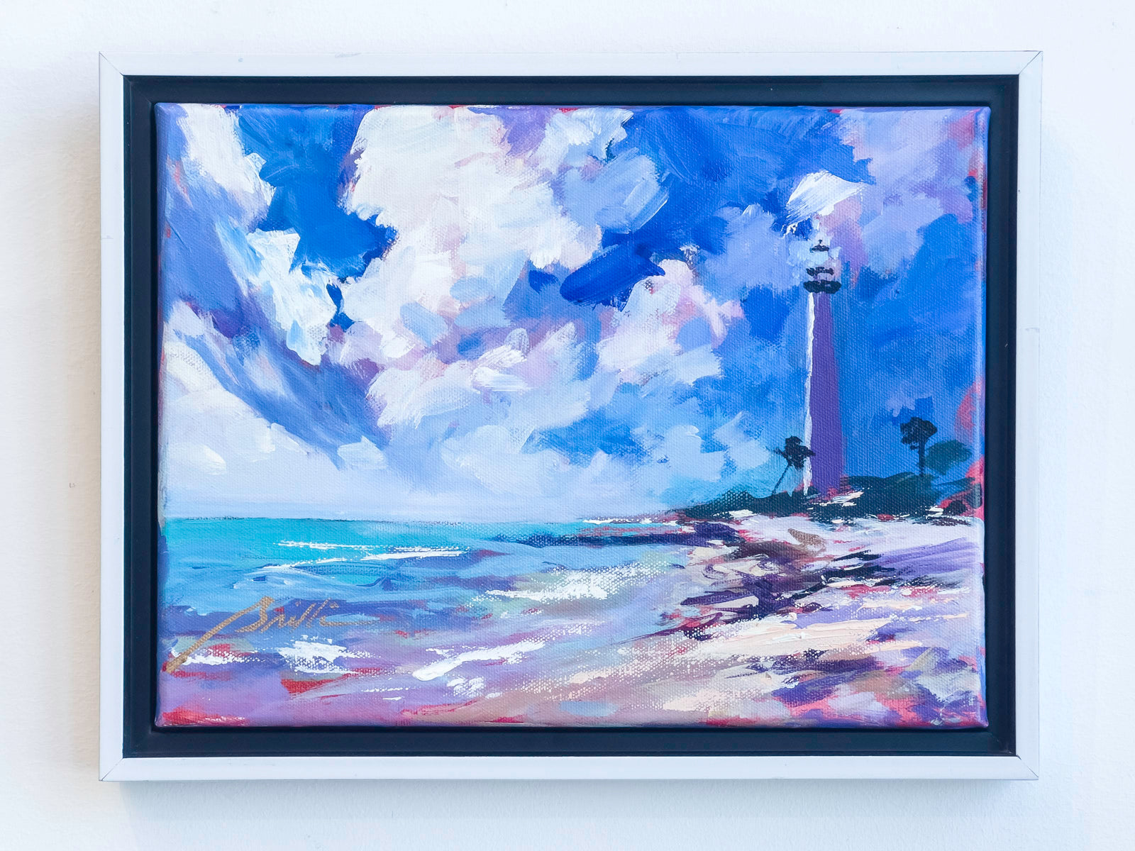 10" x 13" Original oil painting on wood by Ray Brilli. Completed in the artist's bright, spontaneous impressionistic style, Brilli is inspired by the beauty around him. Framed in a white float frame, ready to hang.