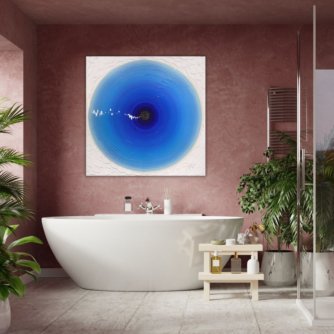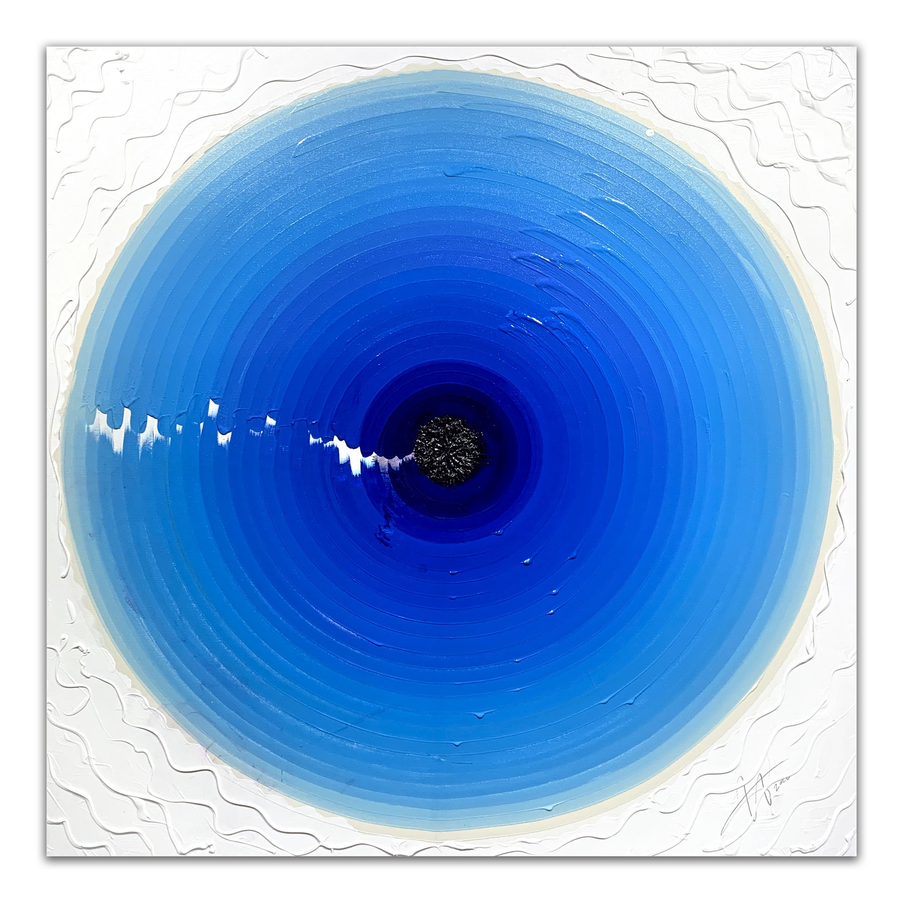 Waves Sound by Juan Sanz measures 52" x 52" and is an original acrylic painting on canvas.