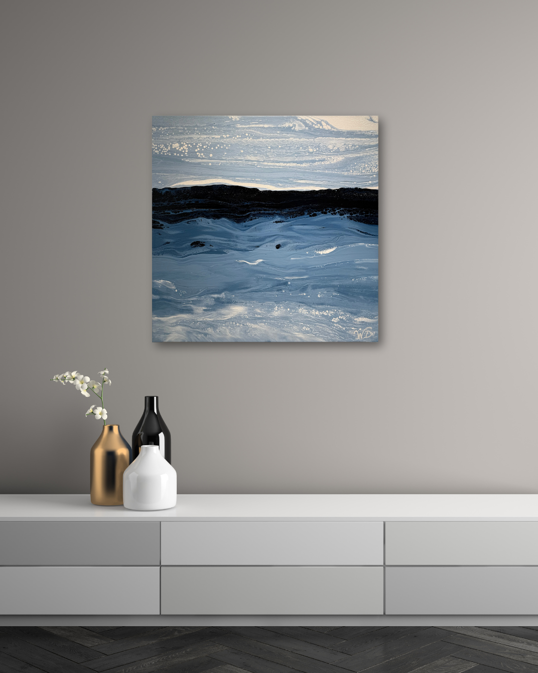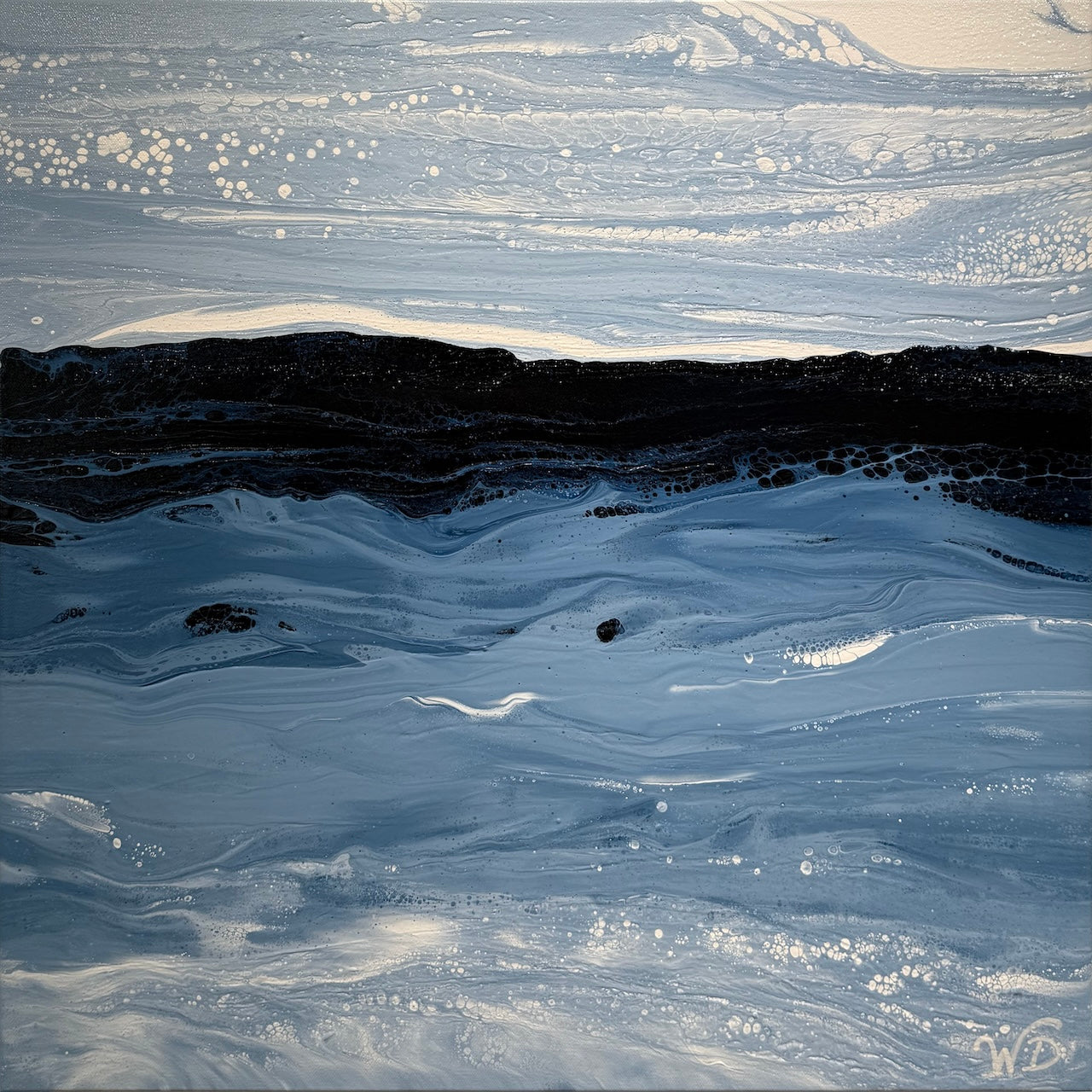 24" x 24" original acrylic on canvas by Wendy Delfosse. The artist is a member of the Florida Women's Arts Association (FLWAA). This work is part of Gallery500's exhibition "50 Shades of Payne's Grey." In this exhibition, FLWAA members interpret the versatile color of Payne's Grey through their own individual lens and media.