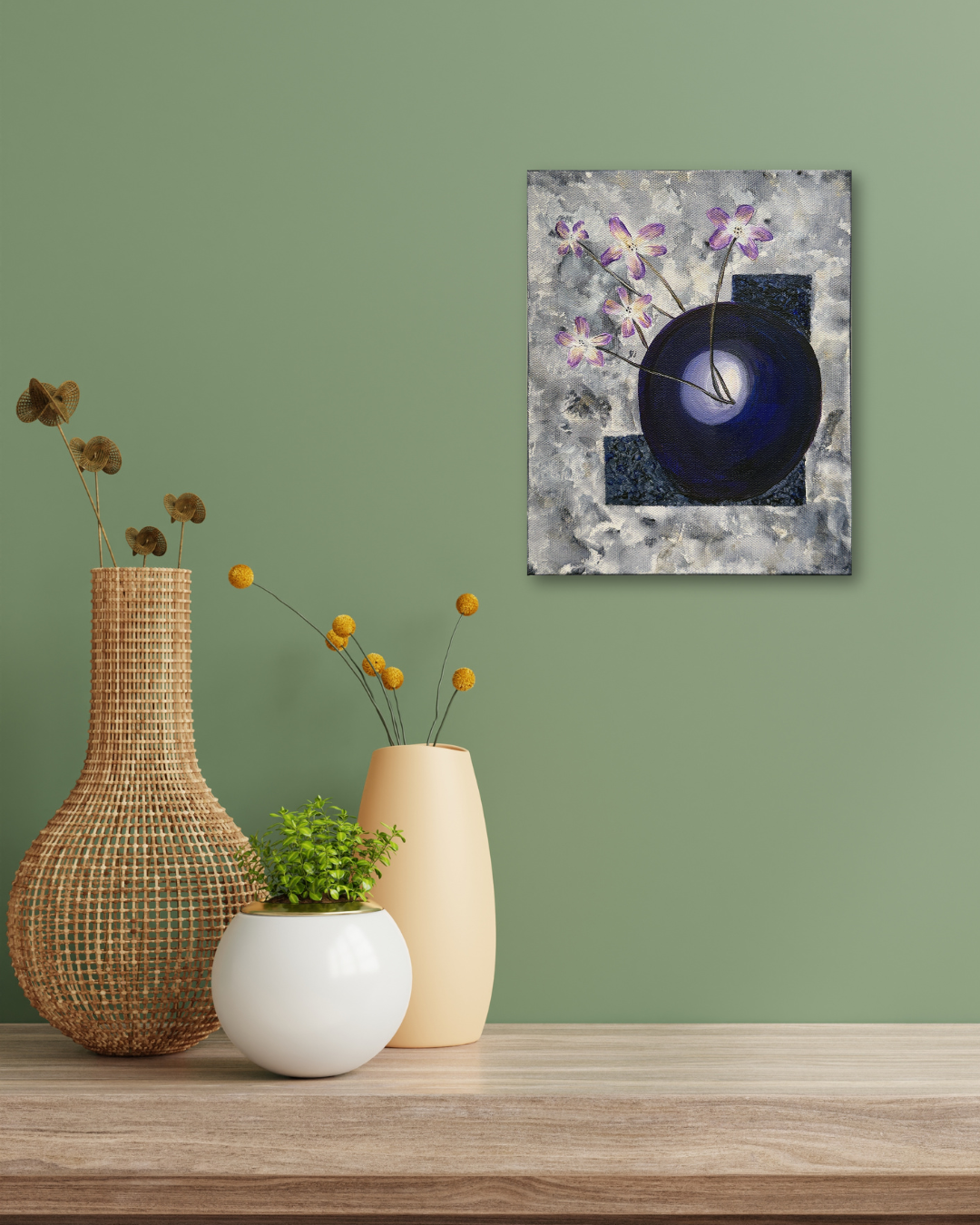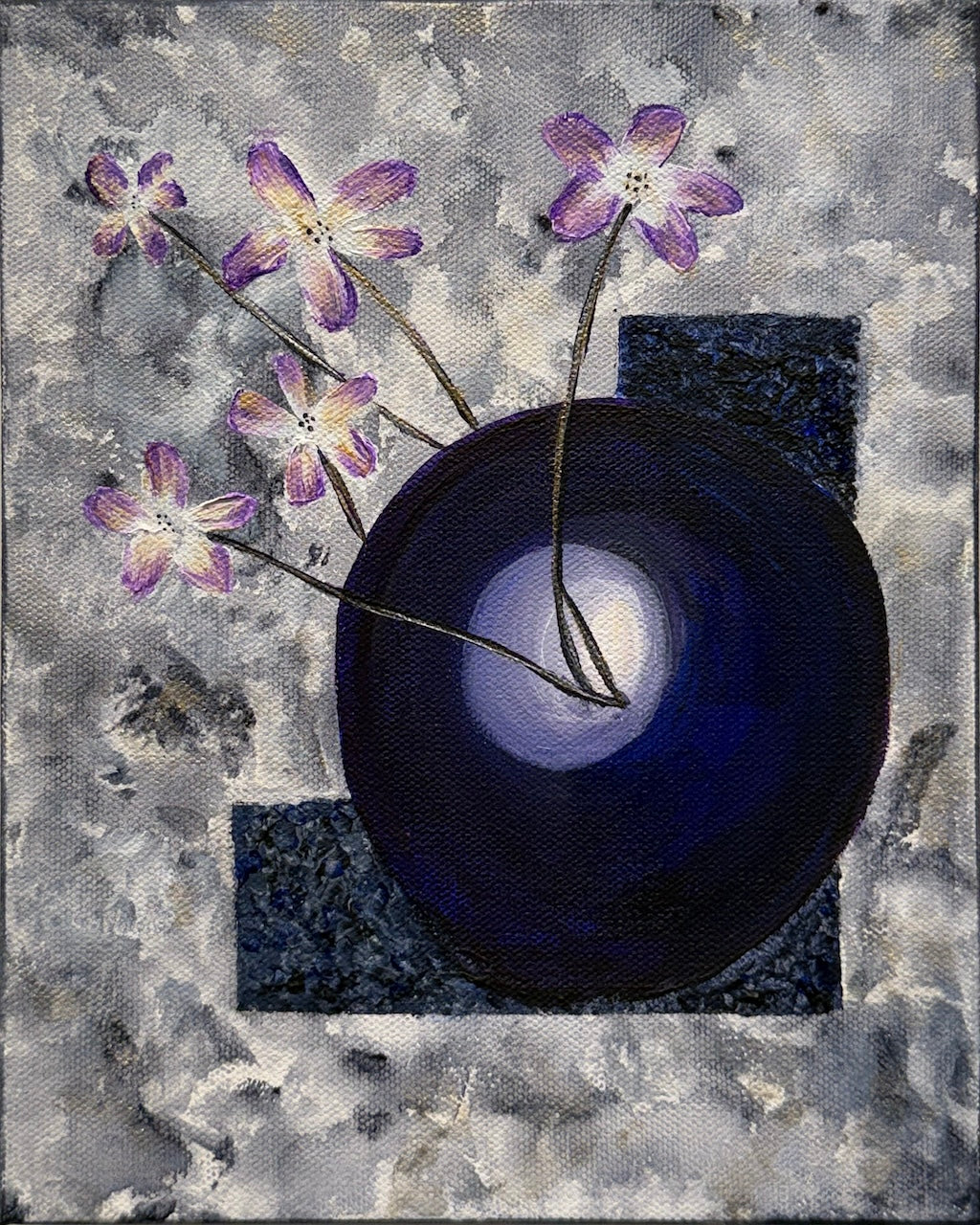 8" x 10" original acrylic on canvas by Cheryl Coxwell. The artist is a member of the Florida Women's Arts Association (FLWAA). This work is part of Gallery500's exhibition "50 Shades of Payne's Grey." In this exhibition, FLWAA members interpret the versatile color of Payne's Grey through their own individual lens and media.