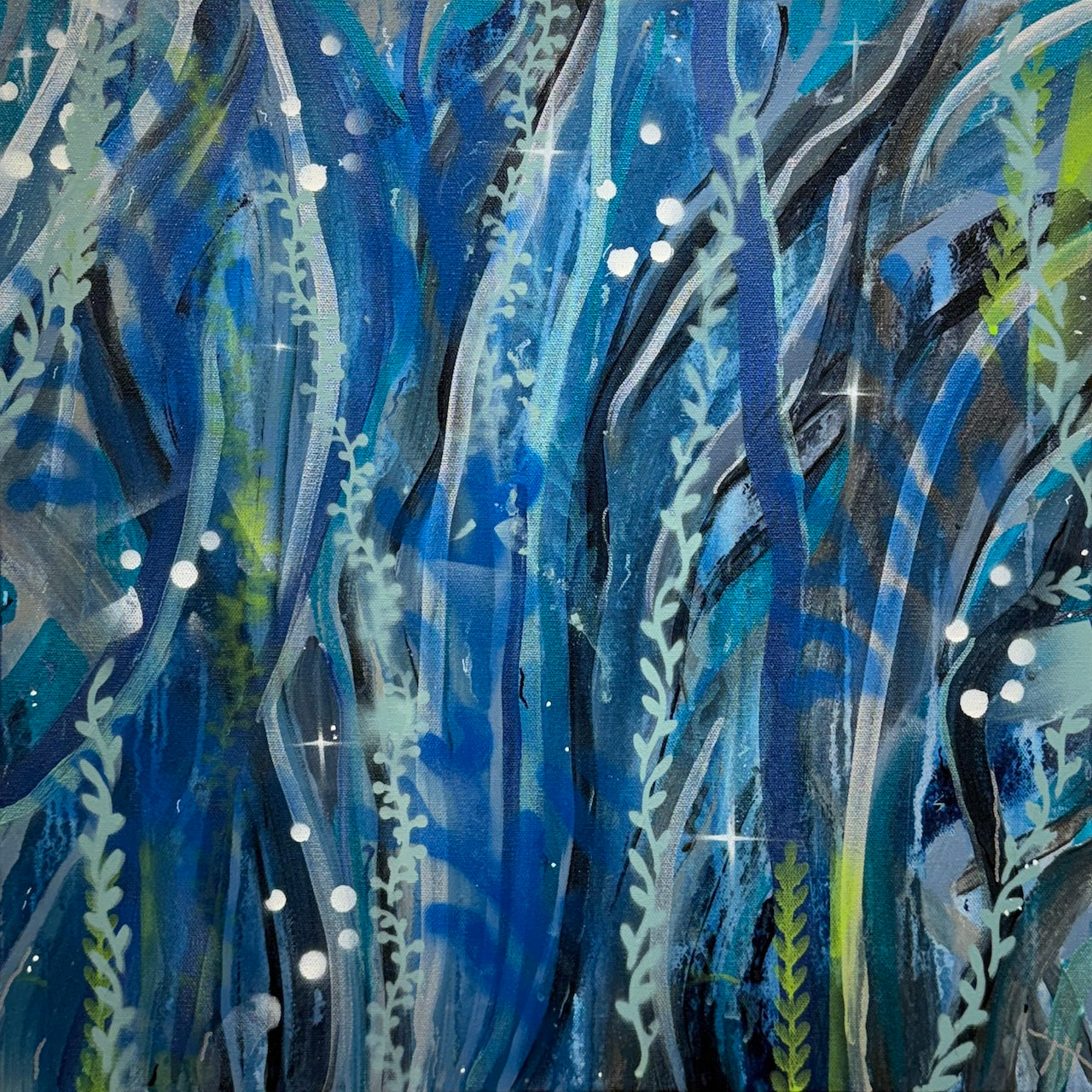 20" x 20" original mixed media on canvas by Tonya Harbuck. Harbuck is a member of the Florida Women's Arts Association (FLWAA). This work is part of Gallery500's exhibition "50 Shades of Payne's Grey." In this exhibition, FLWAA members interpret the versatile color of Payne's Grey through their own individual lens and media.