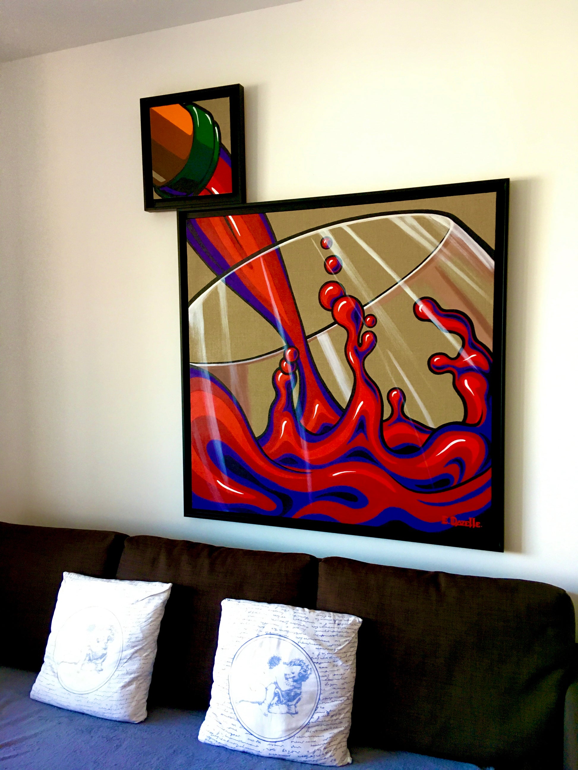 The large wine glass measures 1 m x 1 m & the small piece is 30 cm x 30 cm.