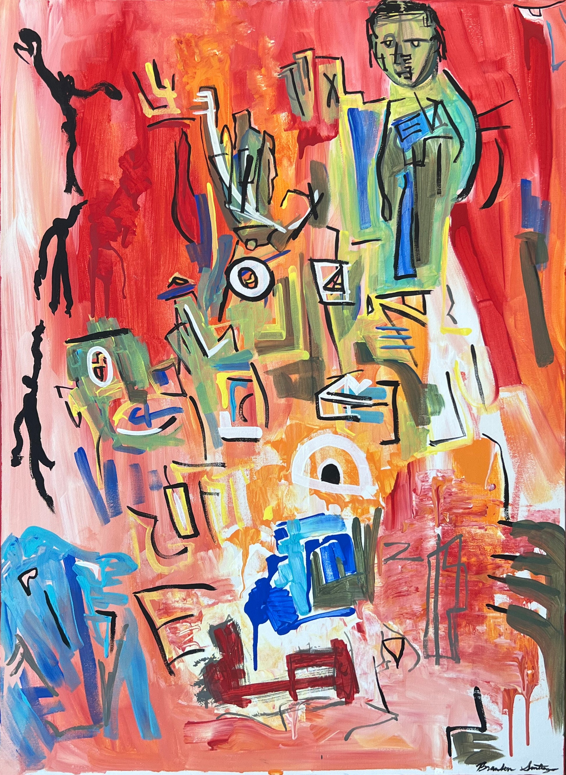 24" x 36" original acrylic on canvas by Florida artist Brandon Santiago. Santiago paints intuitively, allowing forms and shapes to arise naturally. As an artist, Santiago is continually experimenting themes, techniques and styles in order to grow as an artist. Although young for his age, he aspires to accomplish great things, and be a great artist.