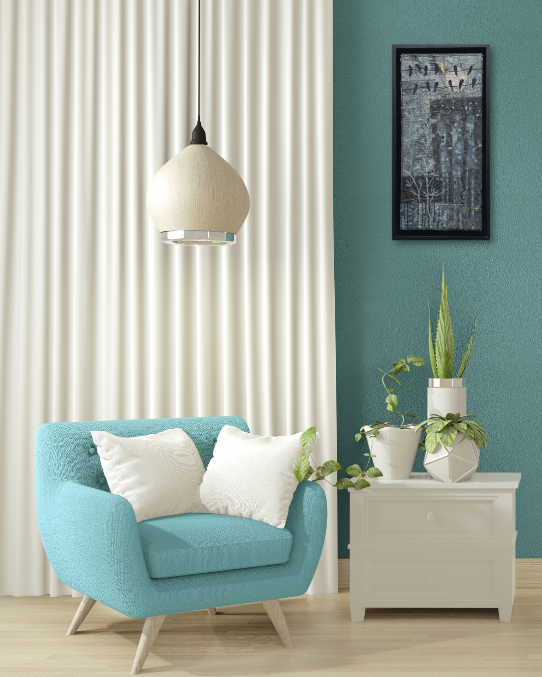 This piece is framed in a black float frame and ready to hang.